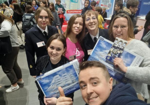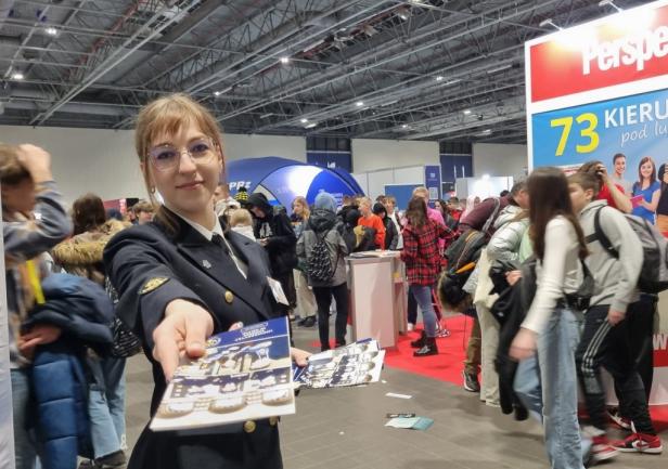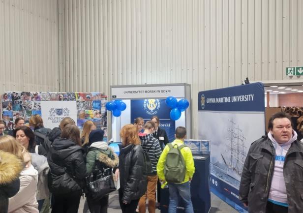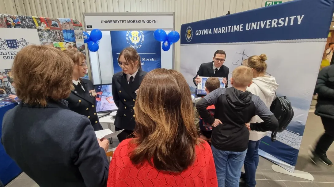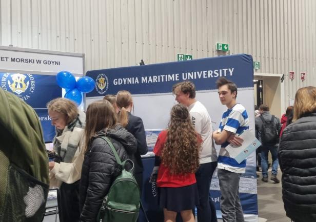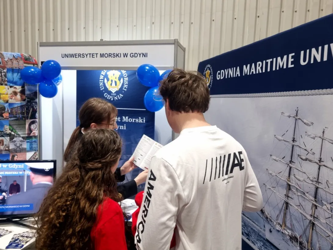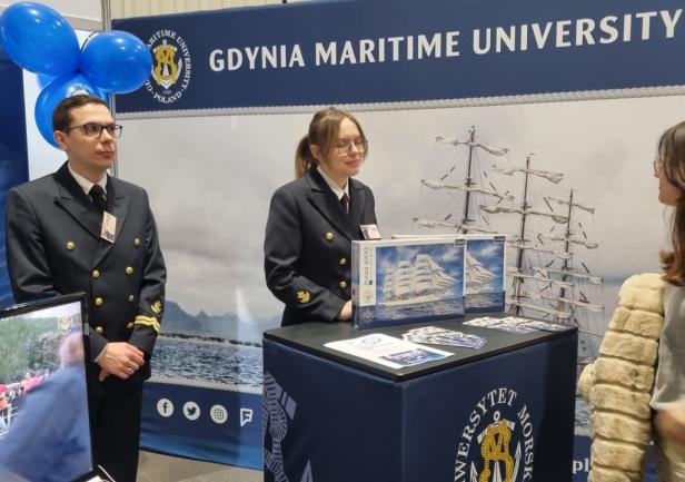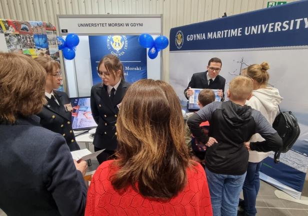 Na setki pytań zadawanych przez uczniów i ich rodziców przez dwa dni (10 - 11 marca 2023 roku) trwania największych w Polsce targów edukacyjnych, odpowiadali pracownicy Biura Promocji i Komunikacji oraz studentki z Wydziału Nawigacyjnego i Wydziału Zarządzania i Nauk o Jakości.