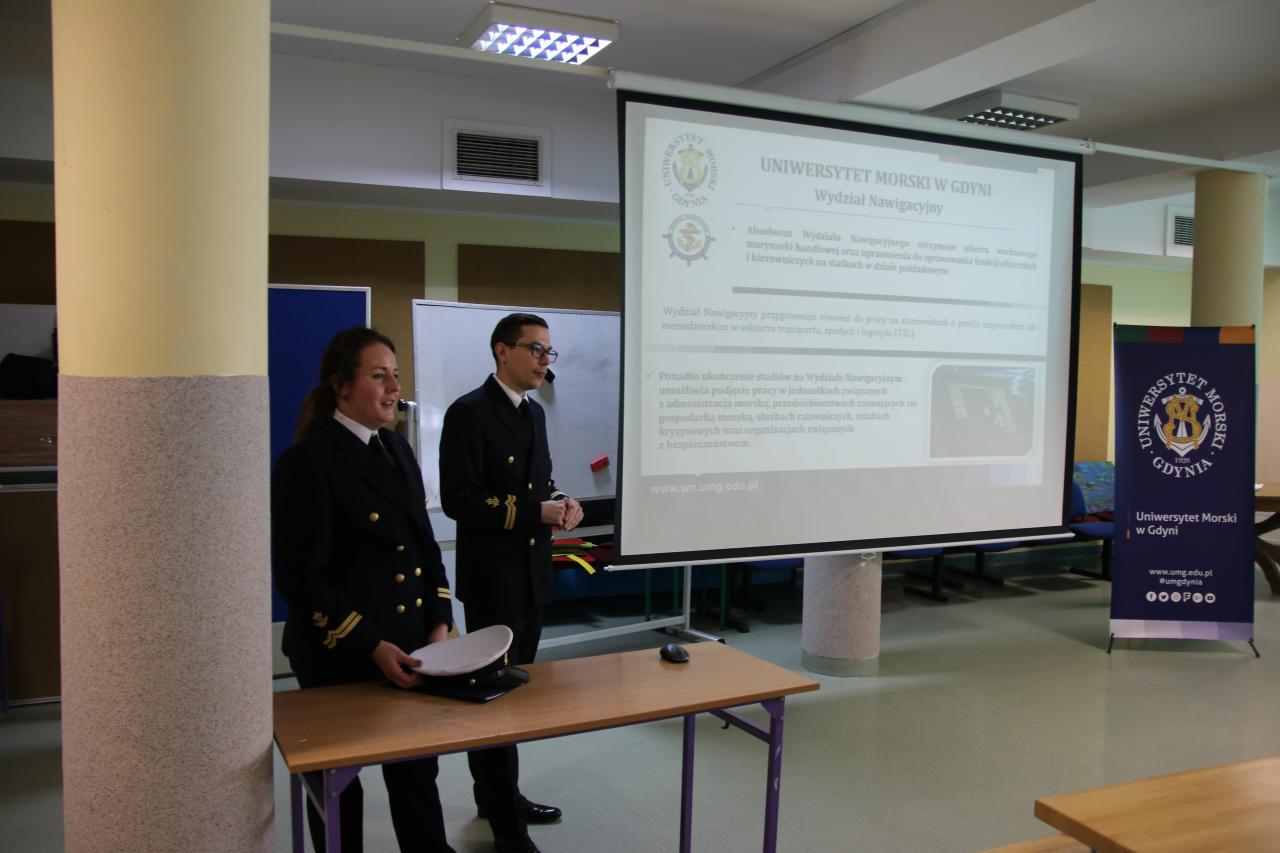 Celem spotkania było zapoznanie uczniów klas ósmych z ofertą edukacyjną Uniwersytetu Morskiego w Gdyni oraz przedstawienie potencjału zawodowego dla otrzymanego wykształcenia na współczesnym rynku pracy.