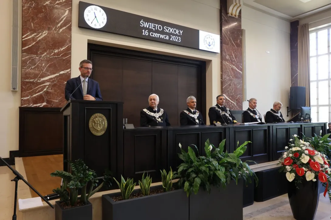 W dalszej części uroczystości głos zabrał Podsekretarz Stanu w Ministerstwie Infrastruktury Grzegorz Witkowski. Minister Witkowski podziękował za zaproszenie na obchody Święta Szkoły, mówiąc: