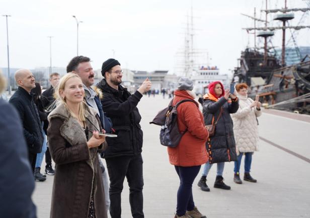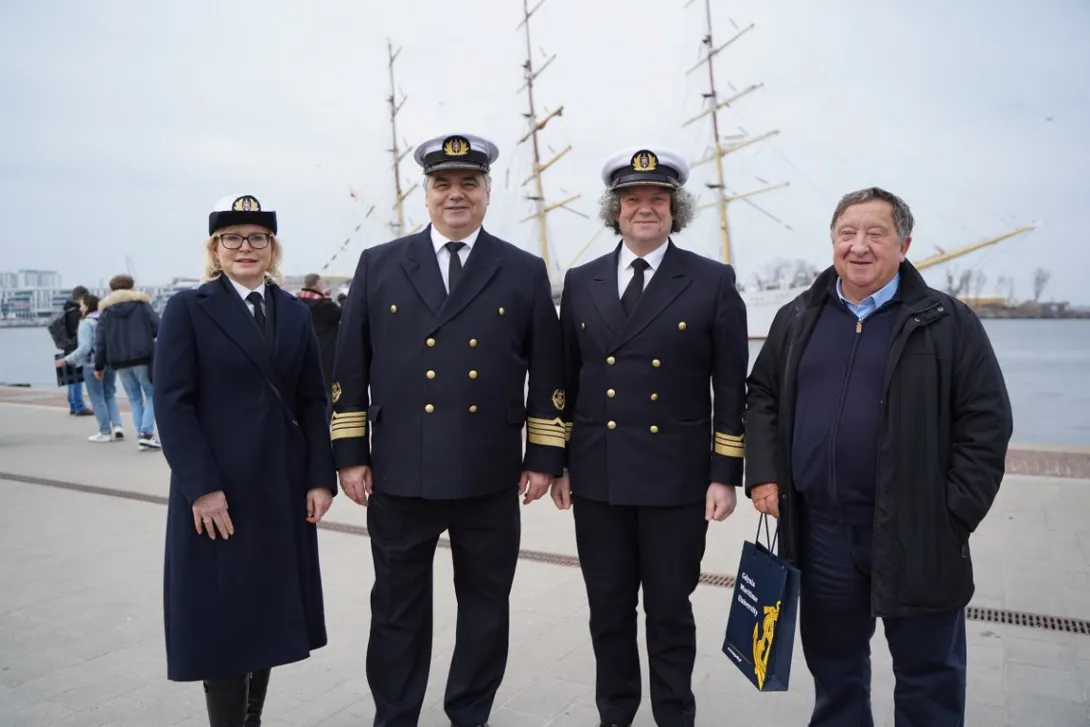Tuż przed rzuceniem cum z załogą "Daru Młodzieży" spotkał się w mesie oficerskiej JM Rektor Uniwersytetu Morskiego w Gdyni prof. dr hab. inż. kpt. ż.w. Adam Weintrit, przedstawiając krótko bieżące sprawy organizacyjne i życząc komendantowi i załodze udanego sezonu żeglarskiego.