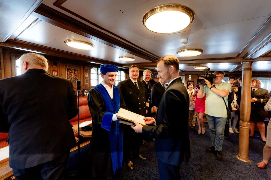 W dniu 20 września 2024 roku, na „Darze Młodzieży” odbyła się uroczystość wręczenia dyplomów absolwentom I edycji studiów podyplomowych Executive Offshore Wind MBA organizowanych przez Centrum Morskiej Energetyki Wiatrowej Uniwersytetu Morskiego w Gdyni.