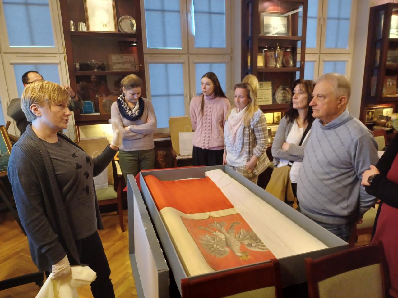 W ramach wizyty studyjnej 7 marca br. w Sali Tradycji gościła grupa pracowników Muzeum Marynarki Wojennej w Gdyni  – z zastępcą dyrektora Muzeum Aleksandrem Goskiem.  Goście zapoznali się  ze zbiorami Sali oraz efektami zakończonego w listopadzie ub. r. projektu pn. „Udostępnianie zbiorów naukowo-historycznych dziedzictwa polskiego szkolnictwa morskiego”. Nie zabrakło odwołań do historii PMH i PMW – i naszych wspólnych wojennych bohaterów, którzy służyli w Marynarce Wojennej i pracowali we flocie handlowej bądź ukończywszy Szkołę Morską, związali swą karierę zawodową z PMW.