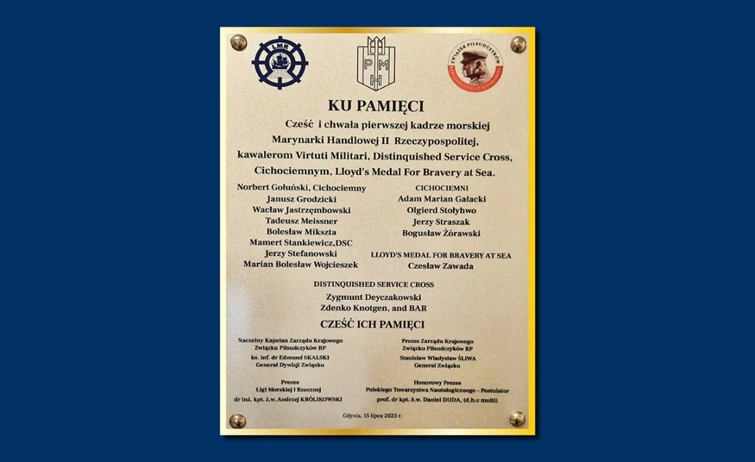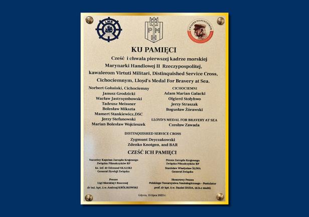 Na ostatniej tablicy znalazły się nazwiska kawalerów Virtuti Militari i Cichociemnych będących przedstawicielami Marynarki Handlowej II Rzeczpospolitej: Norberta Gołuńskiego, Janusza Grodzickiego, Wacława Jastrzębowskiego, Tadeusza Meissnera, Bolesława Mikszty, Mamerta Stankiewicza, Jerzego Stefanowskiego, Mariana Bolesława Wojcieszka, Adolfa Mariana Gałackiego, Olgierda Stołyhwo, Jerzego Straszaka, Bogusława Żórawskiego, Czesława Zawady (Lloyd’s Medal For Bravery At Sea), Zygmunta Deyczakowskiego oraz Zdenko Knotgena (Distinquished Service Cross).