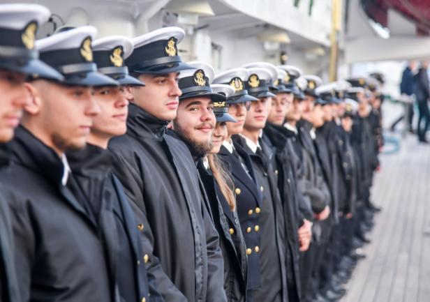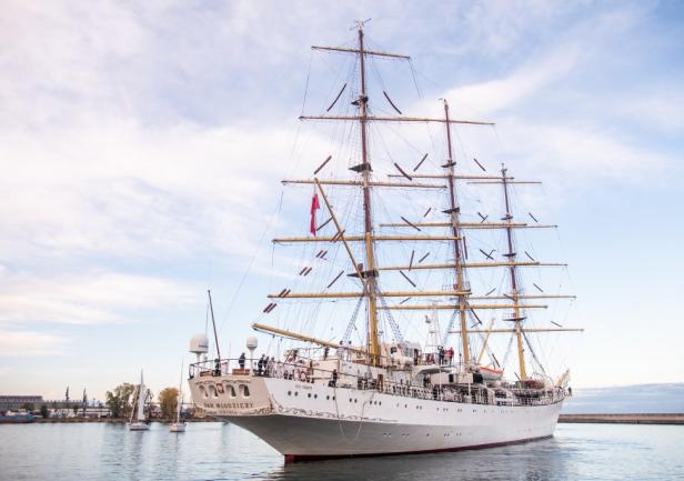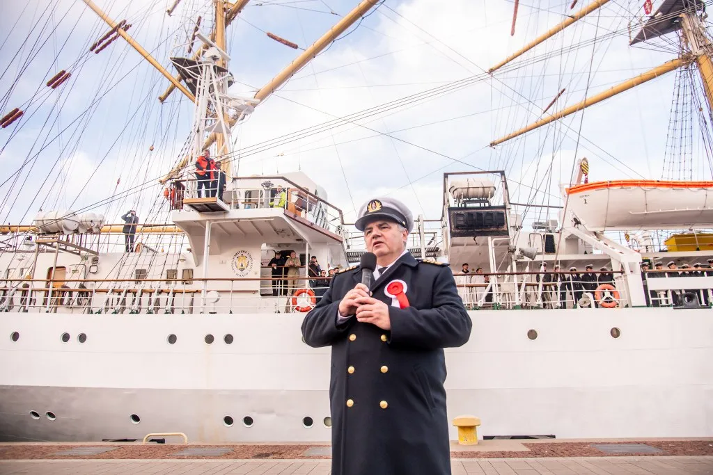 Szkolną fregatę Uniwersytetu Morskiego w Gdyni przywitał JM Rektor prof. dr hab. inż. kpt. ż.w. Adam Weintrit w towarzystwie Prezydenta Gdyni dr. Wojciecha Szczurka, władz Uczelni, członków Senatu UMG, pracowników, studentów, a także rodzin i najbliższych członków załogi naszego statku.