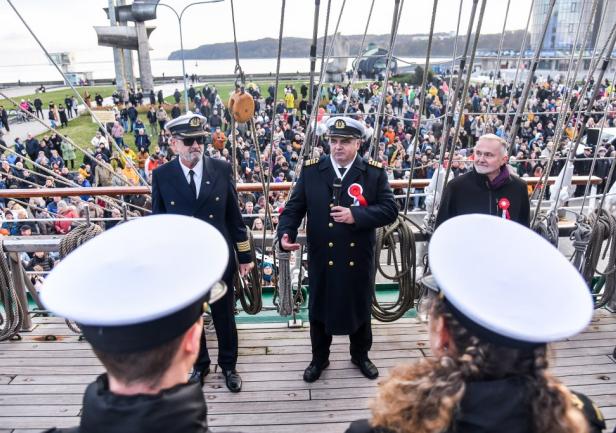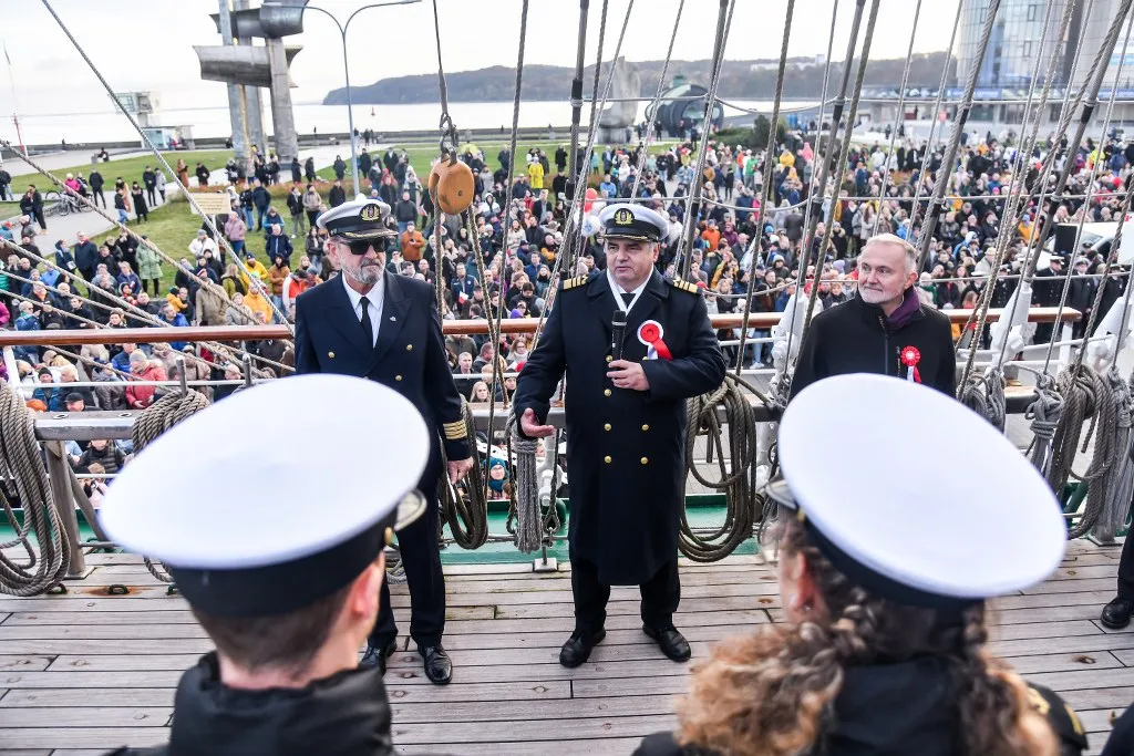 To wielka radość i wielka duma, że w bardzo symbolicznym dniu, 11 listopada, kiedy cała Polska cieszy się Świętem Niepodległości, żaglowiec, który jest symbolem Polski Morskiej, wpływa do portu macierzystego po historycznym rejsie - powiedział prezydent Gdyni, dr Wojciech Szczurek. - Załogo, witamy Was bardzo serdecznie, podziwialiśmy Was za wspaniały wyczyn nawiązujący do historii sprzed 100 lat. Panu Rektorowi, całemu środowisku akademickiemu Uniwersytetu Morskiemu w Gdyni serdecznie gratuluję tego rejsu, to jest naprawdę wielkie wyzwanie.