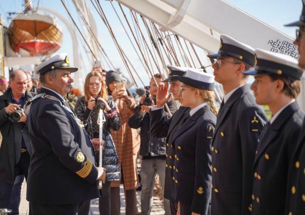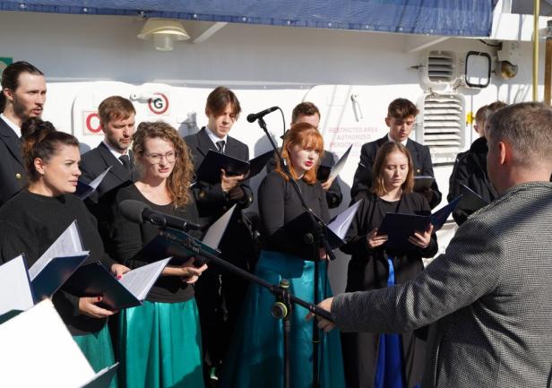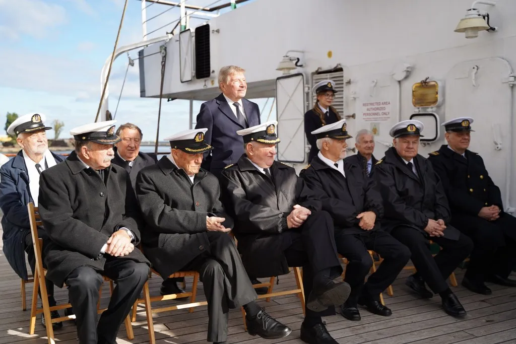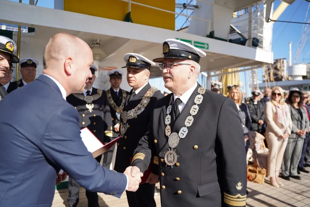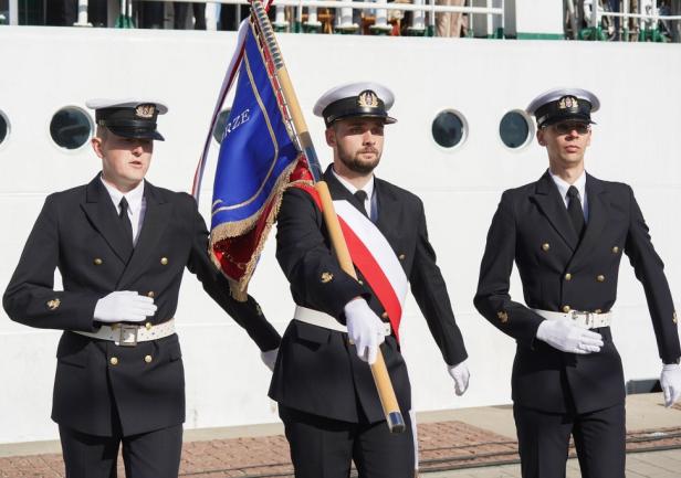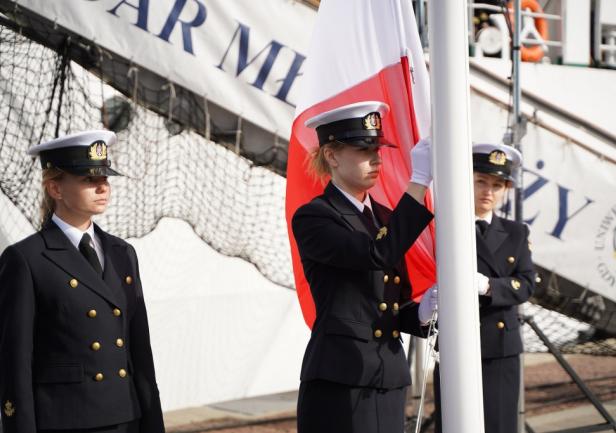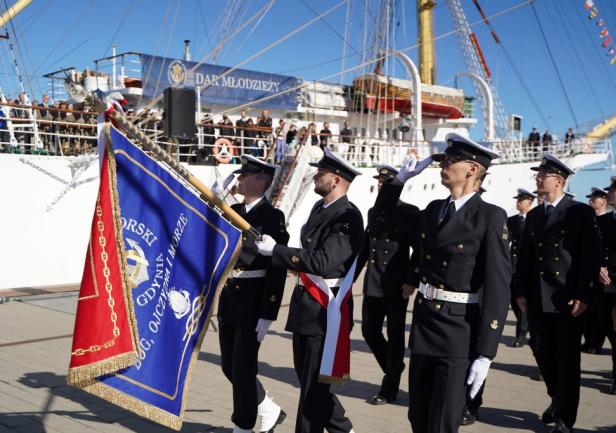 Tradycją stało się, że po ogłoszeniu przez JM Rektora otwarcia roku akademickiego 2024/2025, z pokładu „Daru Młodzieży” rozległ się długi dźwięk tyfonu okrętowego.