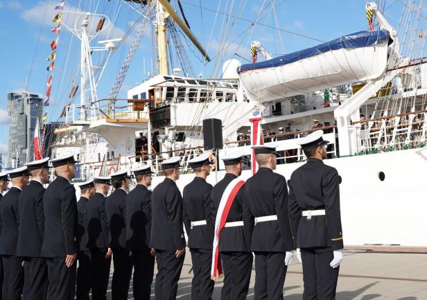 Pięknie obrazuje to szczególna rocznica, ważna dla Państwa uniwersyteckiej wspólnoty, ale poruszająca też serce każdego Polaka. Dziewięćdziesiąt lat temu, 16 września 1934 roku, wypłynął z gdyńskiego portu majestatyczny "Dar Pomorza", (...) aby po odwiedzeniu 23 portów i przebyciu prawie 39 tysięcy mil morskich stać się pierwszą jednostką, która opłynęła świat pod biało-czerwoną banderą.