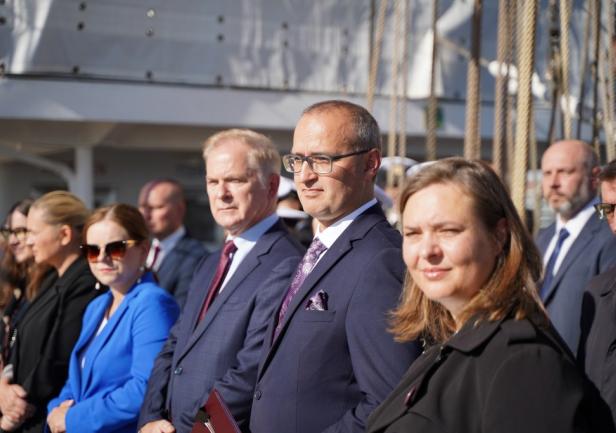 Następnie głos zabrała Ministra Edukacji Pani Barbara Nowacka, która w swoim wystąpieniu zwróciła się do studentek i studentów I roku Uniwersytetu Morskiego w Gdyni, podkreślając, że absolwenci tej Uczelni to wysoko wykwalifikowani specjaliści: