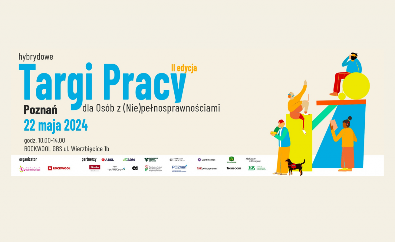 Fundacja Wózkowicze oraz Firma ROCKWOOL GBS wraz z partnerami zapraszają na drugą edycję Hybrydowych Targów Pracy dla Osób z (Nie)pełnosprawnościami