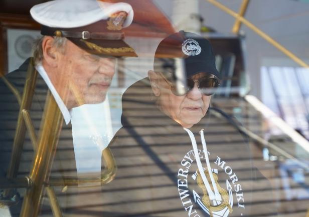 Jurek Owsiak i JM Rektor UMG prof. Adam Weintrit na statku szkolnym Dar Młodzieży