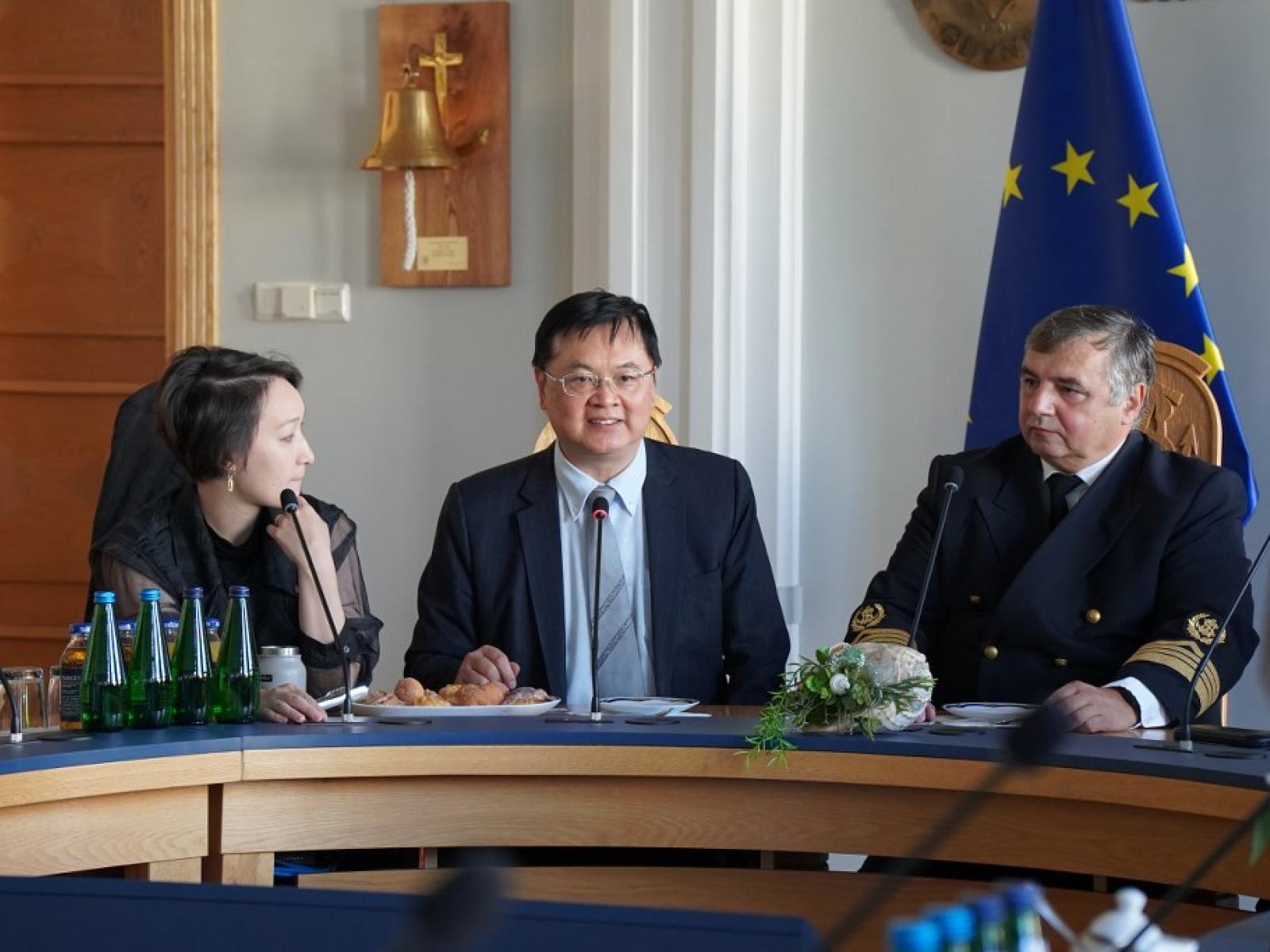 W spotkaniu ze strony Uczelni uczestniczyli także Prorektor ds. Studenckich i Kształcenia dr hab. Sambor Guze, prof. UMG oraz Prorektor ds. Nauki dr hab. Dariusz Barbucha, prof. UMG. W trakcie wizyty odbyła się krótka prezentacja Uczelni zakresie kształcenia oraz nauki, w czasie której przywołano między innymi dotychczasowe doświadczenia Uczelni w zakresie współpracy z Tajwanem, w tym współpracy w ramach międzynarodowej konferencji TransNav, której Uniwersytet Morski w Gdyni jest organizatorem od 1995 roku. Odnotowano również trwająca współpracę Uczelni z National Taiwan Ocean University na mocy zawartego ponad 4 lata temu porozumienia. W czasie dyskusji władze Kaohsiung jako potencjalnych partnerów do współpracy z Uniwersytetem Morskim w Gdyni w obszarze kształcenia oraz nauki wskazały National Sun Yat-sen University oraz National Kaohsiung University of Science and Technology. Obydwie strony wyraziły wolę ponownego spotkania, dostrzegając potencjalne obszary współpracy zarówno w obszarze edukacji morskiej, jak i w kwestiach informatycznych.