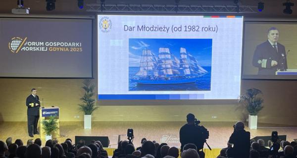 Prezentacja Rektora UMG dot. projektu budowy następcy "Daru Młodzieży" oraz ogłoszenie konkursu na nazwę nowego statku podczas Forum Gospodarki Morskiej 2025