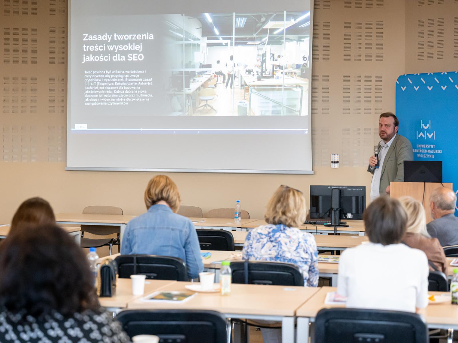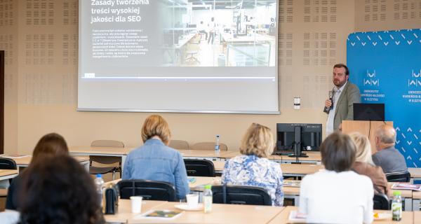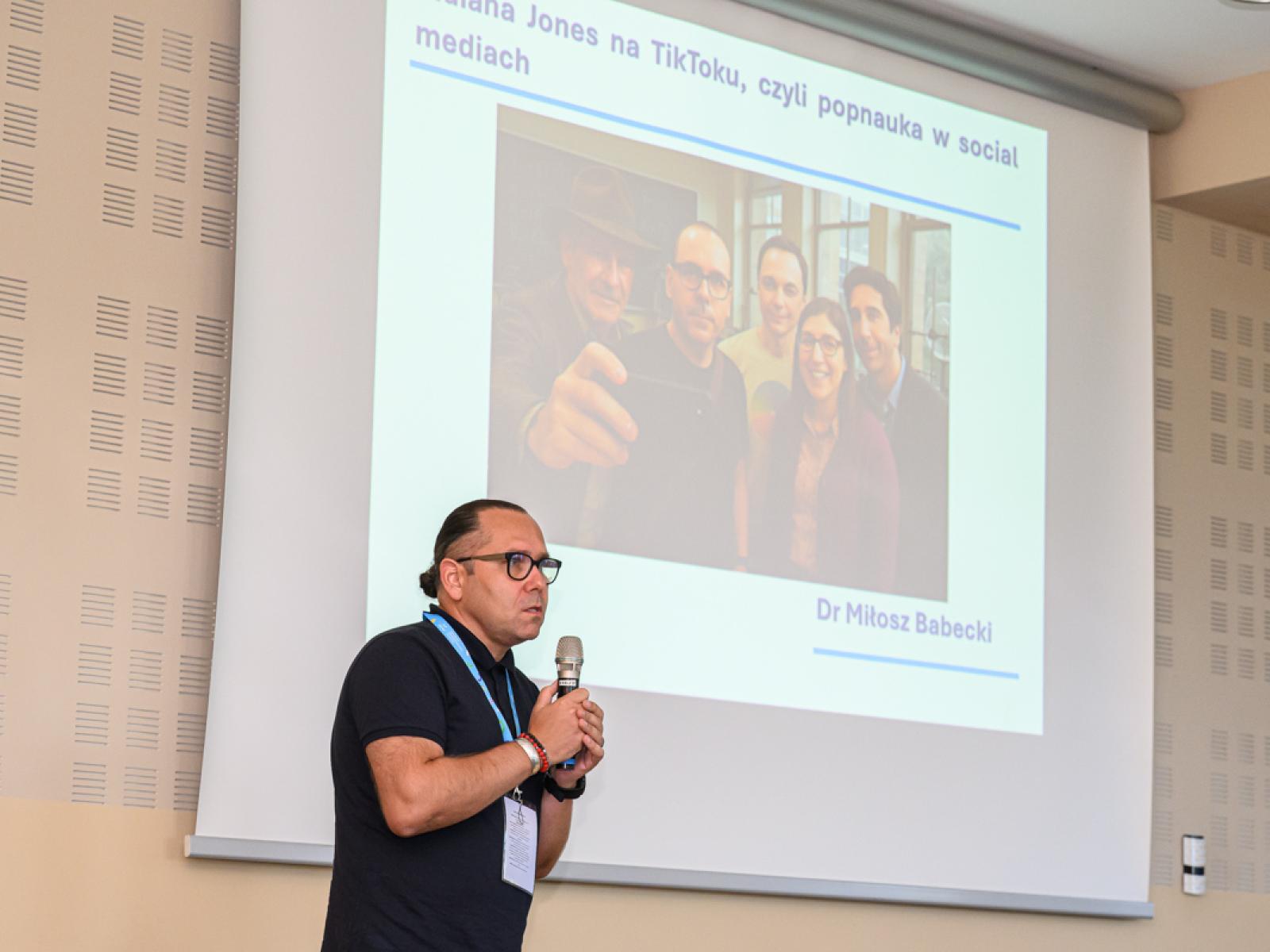 W jednej z sal ogromnego gmachu Biblioteki Uniwersyteckiej odbyła się pierwsza część konferencji. Dr Miłosz Babecki mówił o „popnauce w socjal mediach”, dyrektor biblioteki dr Katarzyna Bikowska o naukowych źródłach informacji, a Michał Orłowski – o SEO w służbie nauki, czyli o zwiększeniu widoczności i wpływu czasopism uniwersyteckich i jak je bezpiecznie pozycjonować.