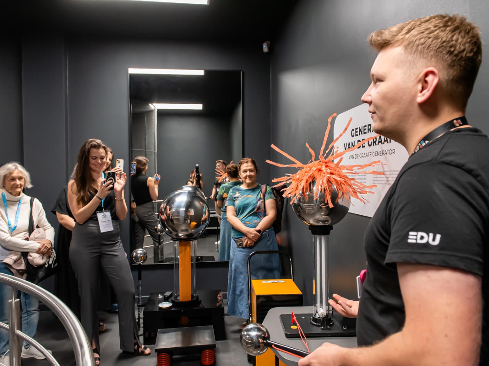 Kolejny blok był o popularyzacji nauki. Dyrektor Centrum Popularyzacji Nauki I Innowacji KORTOSFERA Mateusz Pikuliński z pasją opowiadał o tym jedynym w Polsce ośrodku, będącym nie tylko własnością uczelni, ale także organizującym tournée po Polsce. Na czterech piętrach i 1676 m2 przestrzeni wystawienniczej są interaktywne ekspozycje stałe, specjalistyczne laboratoria, pracownia mikroskopowa i sale do pokazów naukowych (potem zostaliśmy po tym centrum oprowadzeni – robi wrażenie).