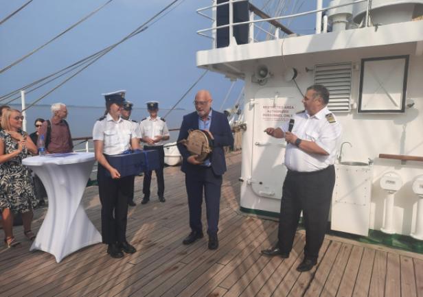 Obchody z udziałem delegacji Uczelni zaplanowano m.in. na pokładzie „Daru Młodzieży”, który 13 sierpnia br. wpłynął wraz z praktykantami Uniwersytetu Morskiego w Gdyni do portu w Bremerhaven. Statek szkolny powitała delegacja Uczelni wraz z JM Rektorem prof. dr. hab. inż. kpt. ż.w. Adamem Weintritem na czele, a także przedstawiciele Hochschule Bremerhaven reprezentowani przez Rektora prof. Alexisa Papathanassisa.