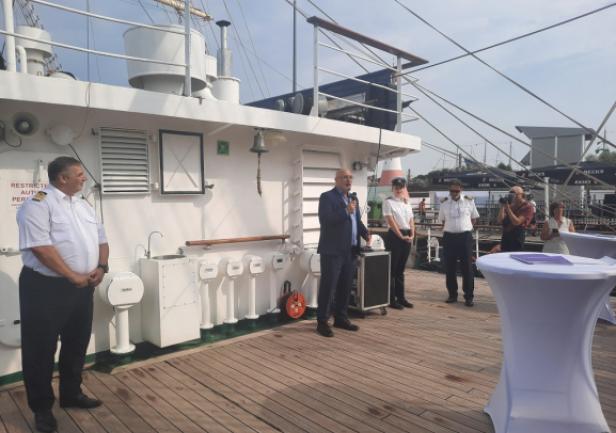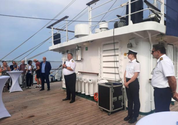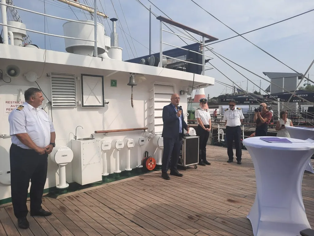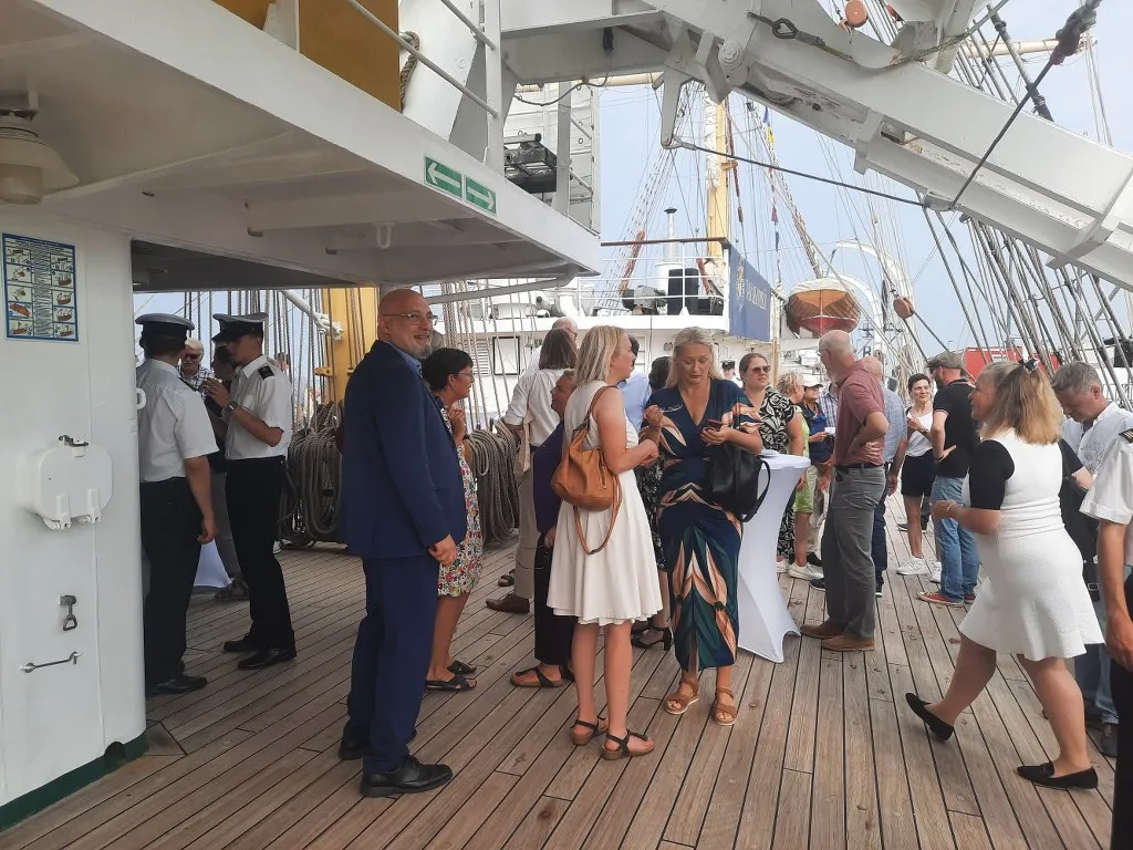 14 sierpnia w ramach wydarzenia miało miejsce oficjalne spotkanie przedstawicieli obydwu uczelni na pokładzie „Daru Młodzieży”. Uczestników tej części obchodów powitał JM Rektor prof. Adam Weintrit, który przypomniał, że Uniwersytet Morski w Gdyni nawiązał współpracę z uczelnią w Bremerhaven niemal 50 lat temu. Wskazał przy tym, że była to pierwsza tego rodzaju współpraca, jaką Uczelnia nawiązała z Uniwersytetem położonym w zachodniej części Europy. JM Rektor podkreślił, że współpraca między uczelniami ma wyjątkowe znaczenie dla Uniwersytetu Morskiego w Gdyni. Nadmienił przy tym, że żywi nadzieję, iż udział delegacji Uczelni w obchodach 50-lecia Hochschule Bremerhaven będzie sprzyjać nawiązaniu kolejnych relacji, a także umocnieniu dotychczasowej współpracy.
