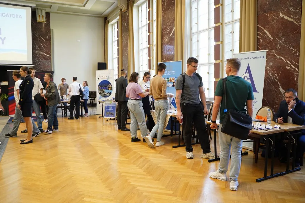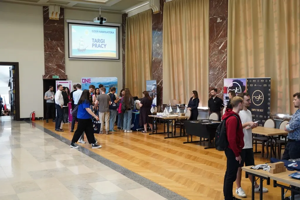 Wydarzenie otworzyli Prorektor ds. Studenckich i Kształcenia dr hab. Sambor Guze, prof. UMG oraz Dziekan Wydziału Nawigacyjnego dr hab. inż. Tomasz Neumann, prof. UMG, którzy w Auli im. T. Meissnera powitali uczestników Dnia Nawigatora oraz zaprosili ich do udziału w targach pracy, które były doskonałą okazją do bezpośrednich rozmów z przedstawicielami firm sektora morskiego i logistycznego oferujących studentom możliwości rozwoju zawodowego oraz znalezienia praktyk i staży. W gronie firm, które wzięły udział w targach pracy w ramach Dnia Nawigatora, znalazły się: Amber Offshore, Polaris, Chipolbrok, Dohle Marine Services, Stodig Ship Management, Ceva Logistics, Ligentia, ONE, Welcome Airport Service, Kuehne Nagel, Northgate Logistic, PZU, Academy Maritime Services, Columbia Group, Star Clippers, Morski Oddział Straży Granicznej oraz Ośrodek Żeglarski UMG.