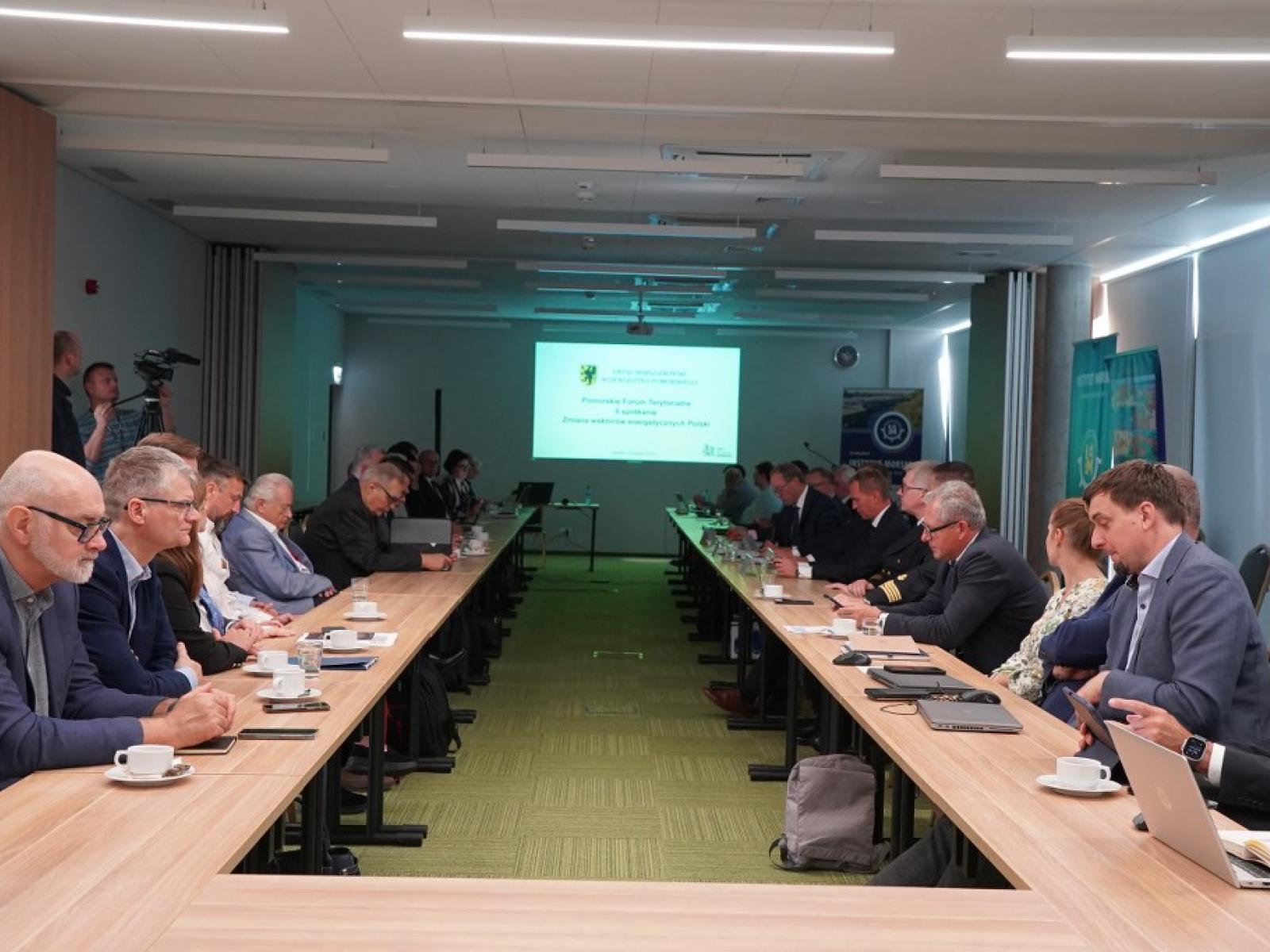 W Centrum Offshore Uniwersytetu Morskiego w Gdyni, w dniu 5 września 2025 roku, odbyło się Pomorskie Forum Terytorialne. Głównym tematem Forum była transformacja energetyczna na Pomorzu. W spotkaniu z udziałem przedstawicieli władz samorządowych z Mieczysławem Strukiem, marszałkiem województwa pomorskiego na czele, jak również środowiska biznesowego i naukowego, uczestniczyli Prorektor ds. Nauki dr hab. Dariusz Barbucha, prof. UMG; Prorektor ds. Umiędzynarodowienia, Współpracy i Rozwoju prof. dr hab. inż. Tomasz Tarasiuk oraz Kanclerz mgr Filip Malata.