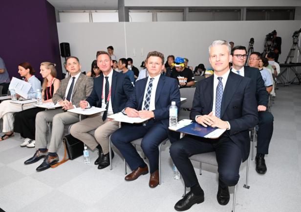W uroczystości sygnowania porozumienia wzięli udział: sekretarz stanu w Ministerstwie Infrastruktury Arkadiusz Marchewka, Ambasador RP w Japonii Pan Paweł Milewski, Dyrektor Generalny w Ministerstwie Infrastruktury Marcin Grabowski oraz delegacja Ministerstwa Infrastruktury obecna w pawilonie polskim na EXPO 2025.