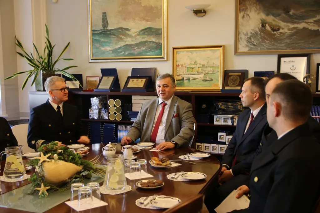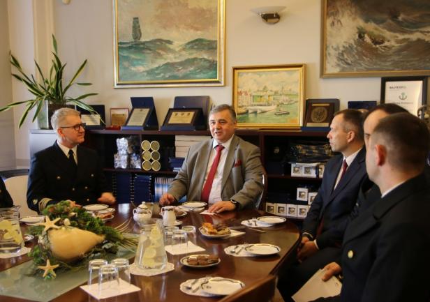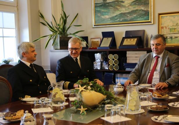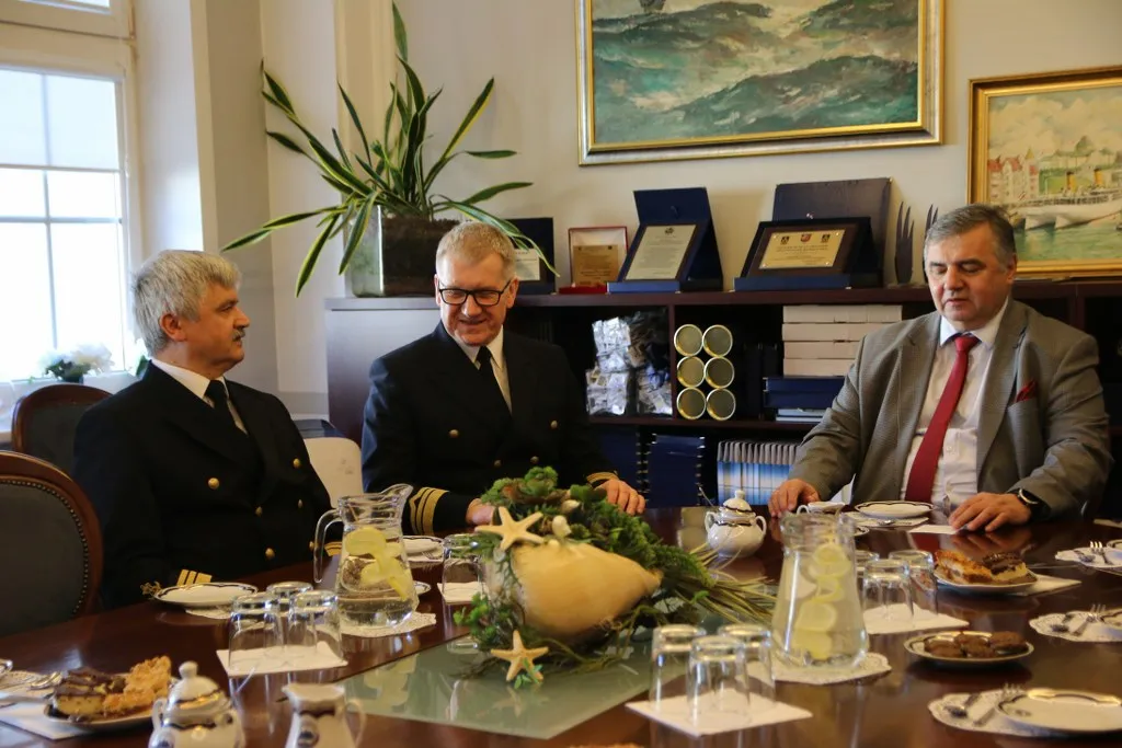W spotkaniu ze strony Uczelni udział wzięli: JM Rektor prof. dr hab. inż. kpt. ż.w. Adam Weintrit, Prorektor ds. Nauki dr hab. Dariusz Barbucha, prof. UMG, Prorektor ds. Studenckich i Kształcenia dr hab. Sambor Guze, prof. UMG, Prorektor ds. Umiędzynarodowienia, Współpracy i Rozwoju prof. dr hab. inż. Tomasz Tarasiuk, Prodziekan ds. Morskich, Współpracy i Rozwoju dr inż. kpt .ż.w., prof. UMG Przemysław Wilczyński z Wydziału Nawigacyjnego, Prodziekan ds. Studenckich i Naukowych dr hab. inż. Robert Starosta, prof. UMG z Wydziału Mechanicznego, Prodziekan ds. Morskich i Studenckich dr inż. Andrzej Piłat, oraz Prodziekan ds. Kształcenia i Organizacji Studiów dr inż. Adam Muc z Wydziału Elektrycznego.