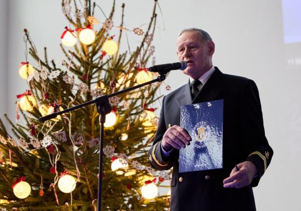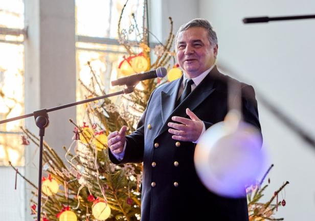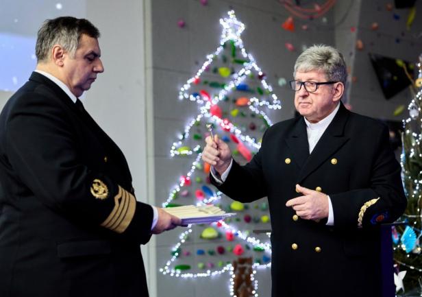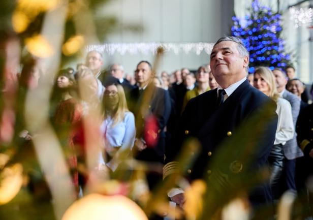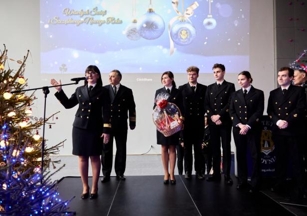 Wydarzenie poprowadził mistrz ceremonii UMG, mgr Aleksander Gosk, który powitał zgromadzonych gości, a następnie oddał głos JM Rektorowi, prof. dr. hab. kpt. ż.w. Adamowi Weintritowi. JM Rektor,  składając życzenia świąteczno-noworoczne, poprosił, aby w tym roku przy świątecznym stole wszyscy tutaj obecni życzliwie pomyśleli o tych, którzy w tym wyjątkowym okresie przebywają na morzu, będąc z dala od swoich bliskich i rodzin.