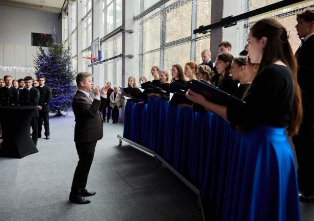 Spotkanie było okazją do podzielenia się opłatkiem i wysłuchania kolęd w wykonaniu Akademickiego Chóru Uniwersytetu Morskiego w Gdyni pod dyrekcją dr. Karola Hilli.