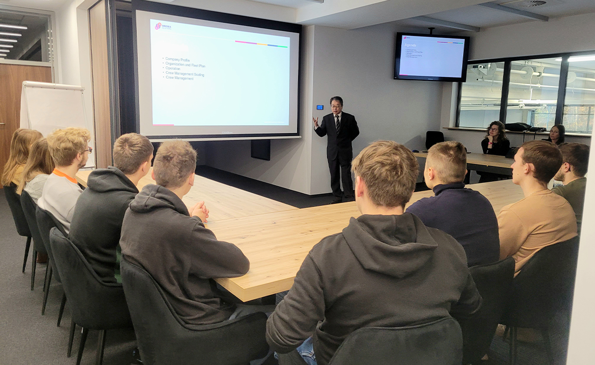 Przedstawiciele firm ONESEA Solutions, Ocean Network Express LTD oraz Polaris Maritime Services odwiedzili naszą Uczelnię. Obecnym na spotkaniu studentom przedstawiony został program stypendialny firmy ONESEA Solutions.