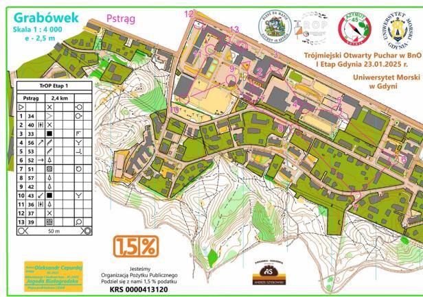 W czwartkowy wieczór, 23 stycznia 2025 r. w UMG odbył się inauguracyjny etap Trójmiejskiego Otwartego Pucharu w Biegu na Orientację (TrOP), który w bieżącym roku gości na terenie trójmiejskich uczelni wyższych oraz dzielnicach Gdyni i Gdańska (cykl 10 comiesięcznych zawodów). Oprócz wymiaru sportowego impreza, w której wzięło udział ok. 60 osób na 4 trasach o różnym poziomie trudności, miała także charakter popularyzacyjny. Najmłodsza uczestniczka miała 4 latka, a najstarszy zawodnik 71 lat.