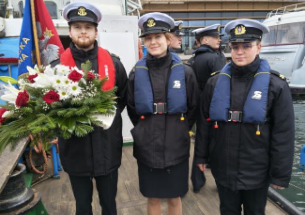 Delegacje znajdujące się na pokładzie statku Urzędu Morskiego w Gdyni złożyły kwiaty na wodach Zatoki Gdańskiej, oddając hołd pamięci generała. Naszą uczelnię reprezentowali pracownicy oraz studenci, którzy w imieniu całej społeczności akademickiej wrzucili w toń Zatoki Gdańskiej wiązankę biało-czerwonych kwiatów.