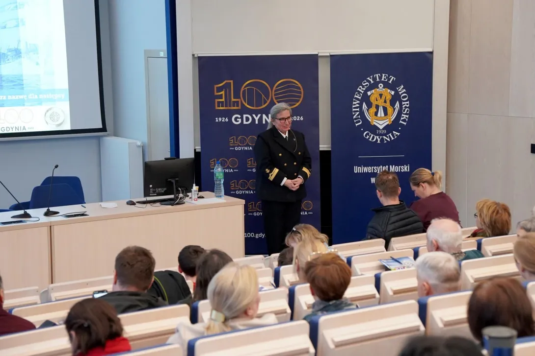 W dniu 9 kwietnia 2026 roku w Auli Wydziału Nawigacyjnego Uniwersytetu Morskiego w Gdyni, mieszczącej się przy al. Jana Pawła II 3, odbył się pierwszy wykład realizowany przez Uczelnię w ramach cyklu popularnonaukowego przygotowanego z okazji 100-lecia Gdyni.