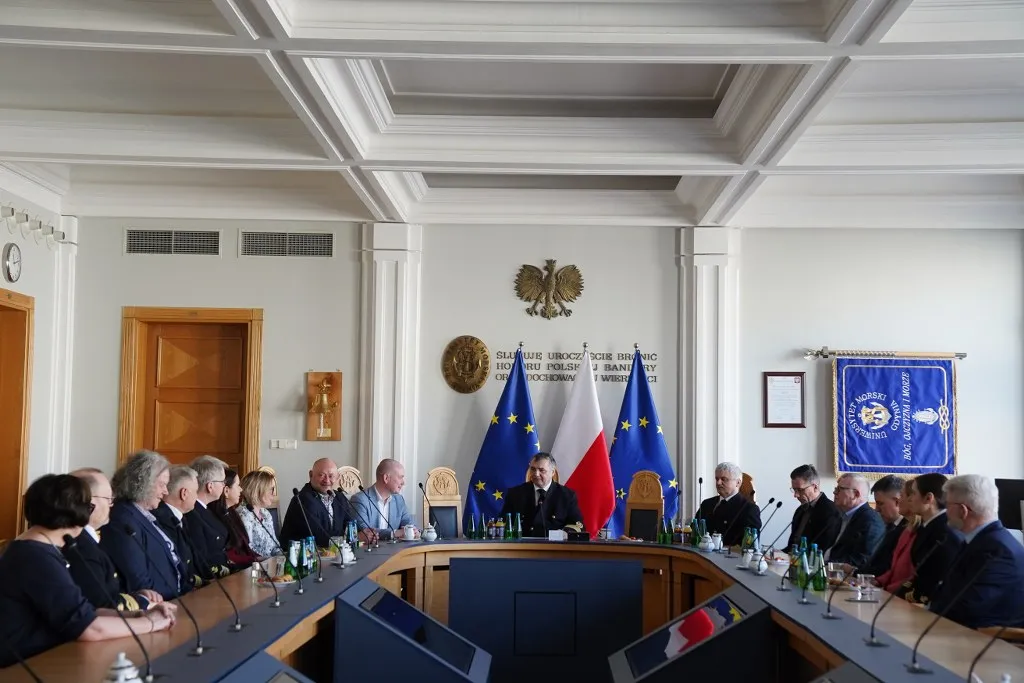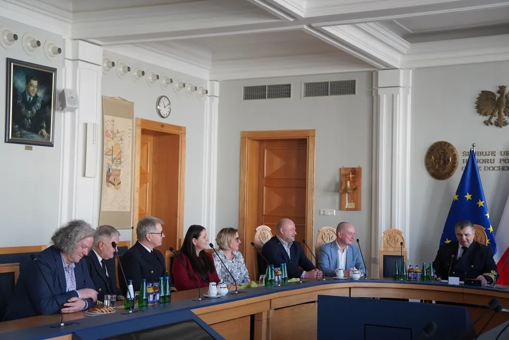 Celem spotkania było omówienie bieżącej współpracy pomiędzy Uczelnią a Departamentami, a także wymiana doświadczeń dotyczących funkcjonowania systemu kształcenia kadr dla gospodarki morskiej.