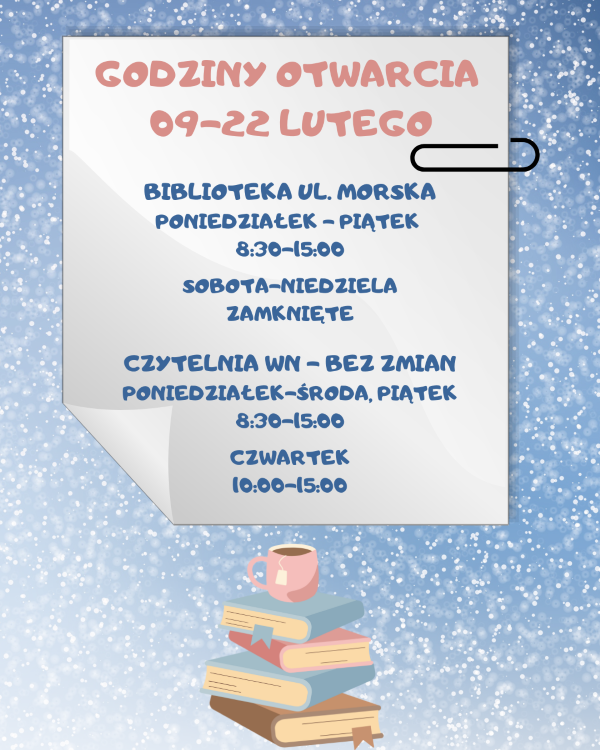 Zmiana godzin otwarcia Biblioteki Głównej UMG w dniach 09 – 22.02.2026 r.