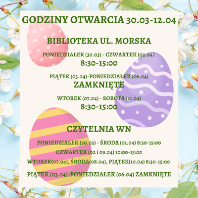 piątek 03.04 – poniedziałek 06.04 – nieczynne