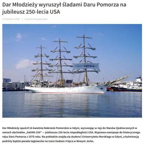 „Dar Młodzieży” - trzymasztowa fregata, żaglowiec szkolny Uniwersytetu Morskiego w Gdyni kontynuuje tradycję dwóch słynnych poprzedników – „Lwowa” – żaglowca lat pionierskich, kiedy to jeszcze Tczew był siedzibą Szkoły Morskiej i „Daru Pomorza” – „białej fregaty”, służącej szkoleniu kadr morskich dla biało-czerwonej bandery w latach 1930 – 1982.