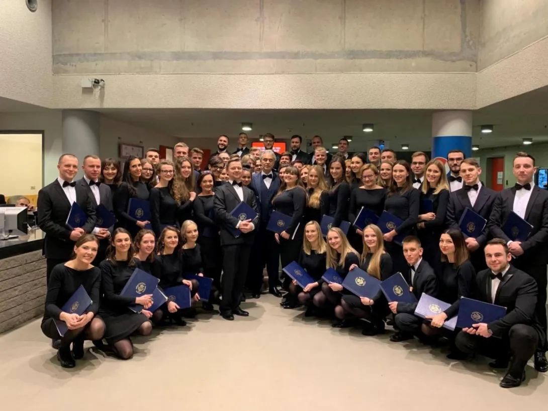 The choir’s repertoire includes works from various periods – from the Middle Ages to the present day, ranging from intimate a cappella pieces to monumental vocal-instrumental works. The choir regularly takes part in cultural events, scientific conferences, as well as church and academic ceremonies. It performs both at home and abroad, and has given concerts in Italy, Spain, France, Germany, Romania, Lithuania, the USA, and Japan.