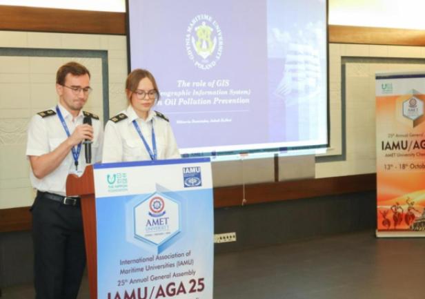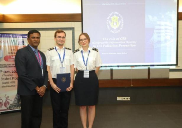 Gdynia Maritime University delegates also took part in the IAMU Conference on ‘ Technologies and Innovations towards Sustainable Maritime Practices’, presenting their scientific papers and posters. GMU doctoral candidate Weronika Ceynowa and Dr Adam Przybyłowski presented a paper entitled ‘Exploring digital solutions in maritime transport - challenges in supply chain management on training vessels.’ Captain Dariusz Jellonek, Director of the Ship Operations Department, presented a paper written in collaboration with Dr Katarzyna Skrzeszewska, entitled ‘The directions of changes in motivators for choosing a career at sea’. This was followed by a poster presentation given by Captain Paweł Kołakowski in which he presented the results of research conducted in collaboration with Dr Kamil Formela, as well as Croatian researchers Filip Bojić, Mislav Maljković and Lea Vojković, on the subject of ‘Understanding the Concept of Safe Distance in Maritime Navigation: Insights from Simulator-Based Training.’ The part of the Conference dedicated to students included presentations from GMU students from the Faculty of Navigation, Weronika Dumińska and Jakub Kulbat, entitled: ‘The Role of GIS in Oil Pollution Prevention’.