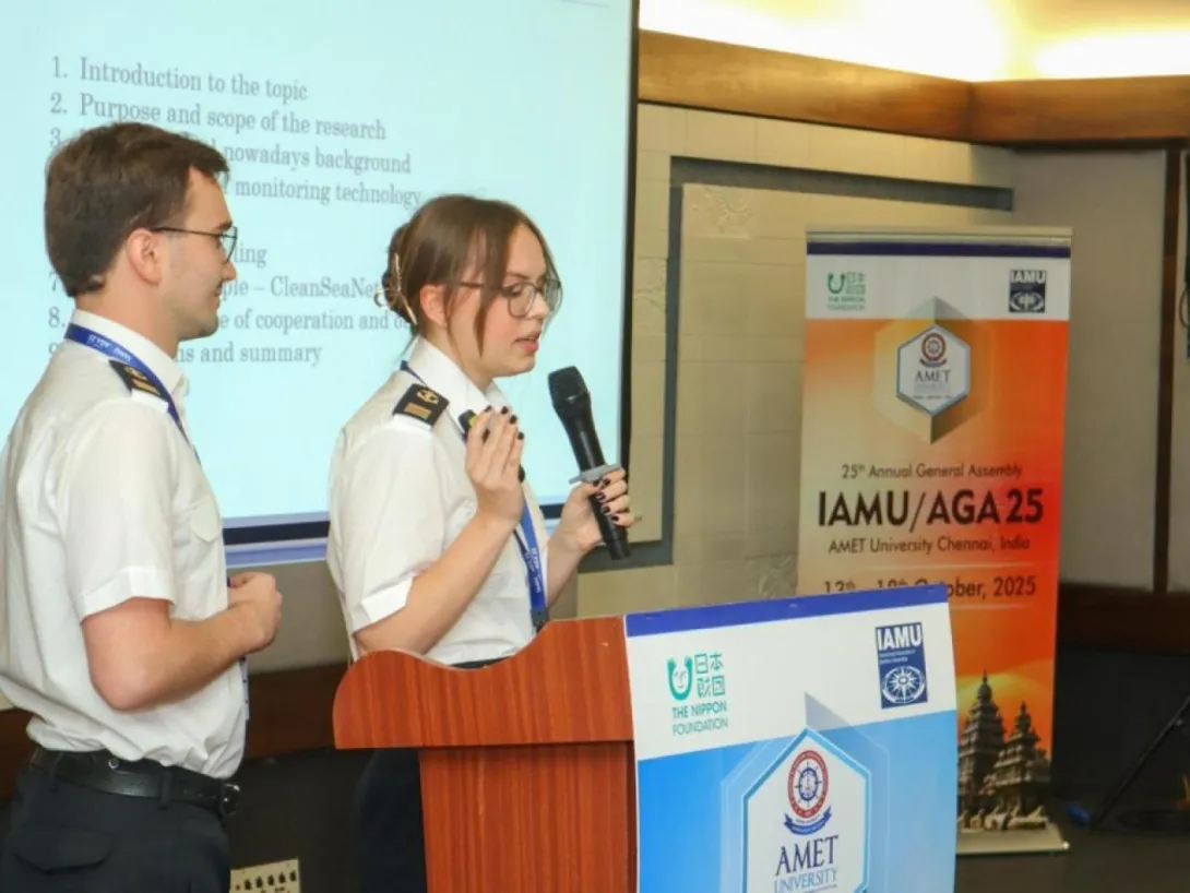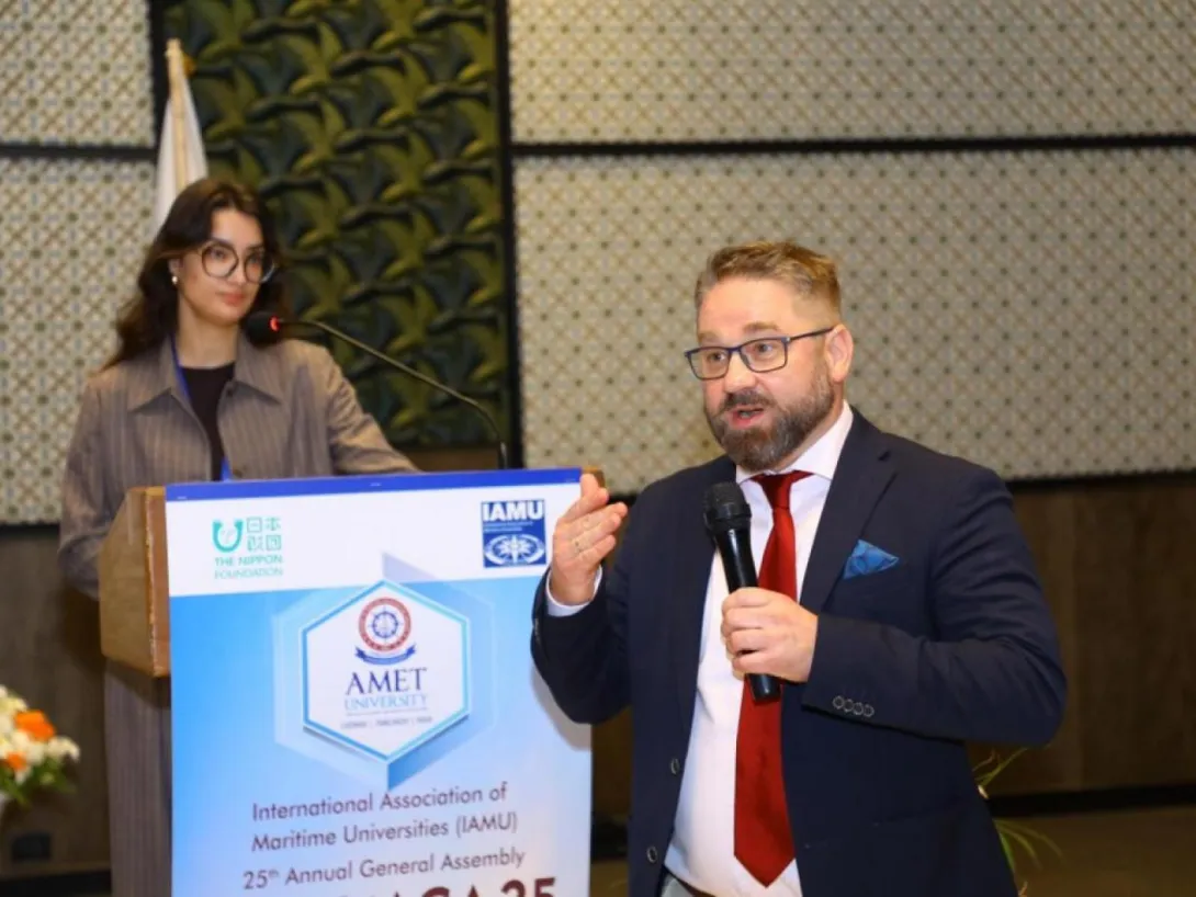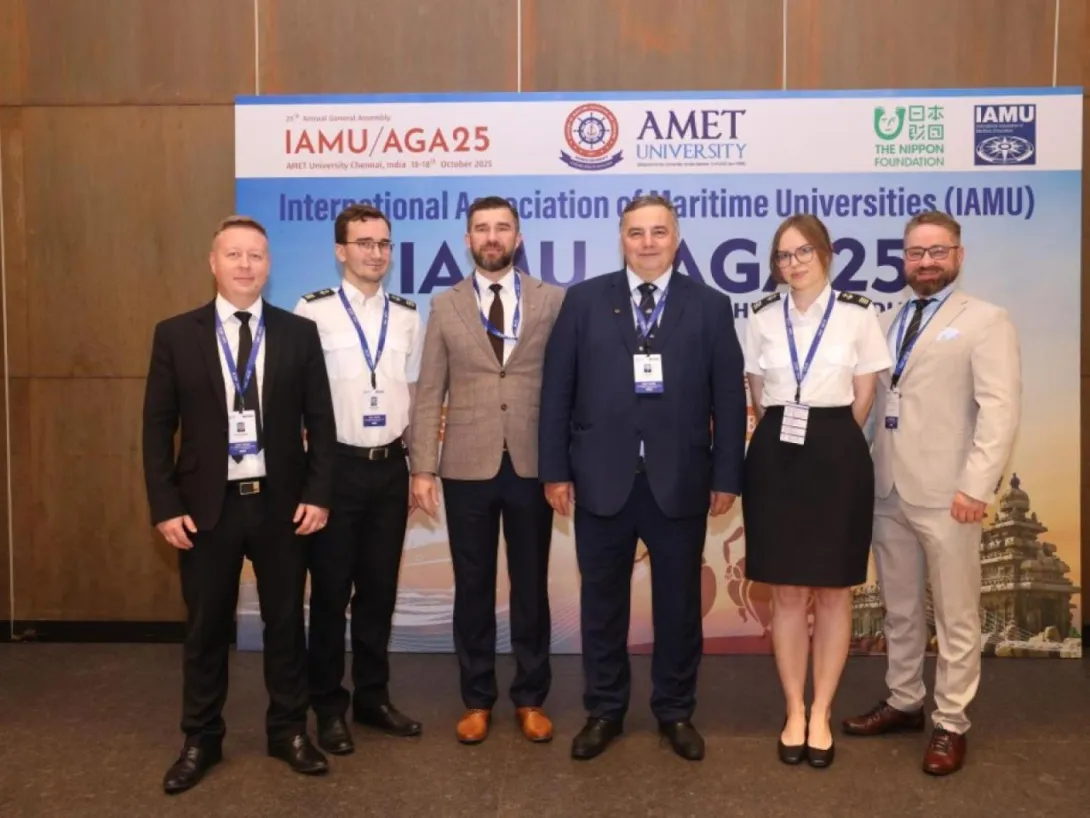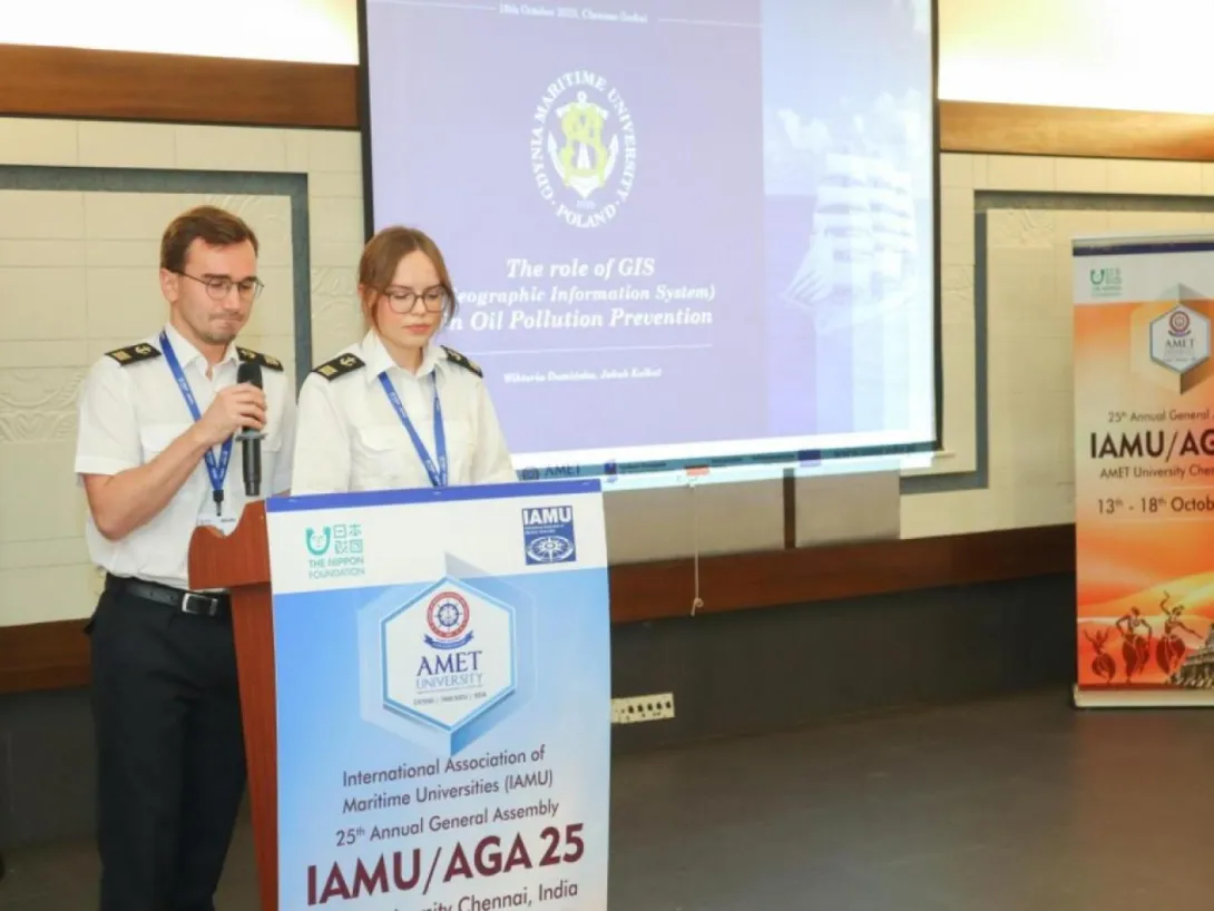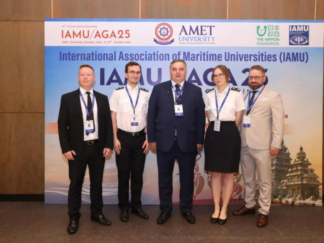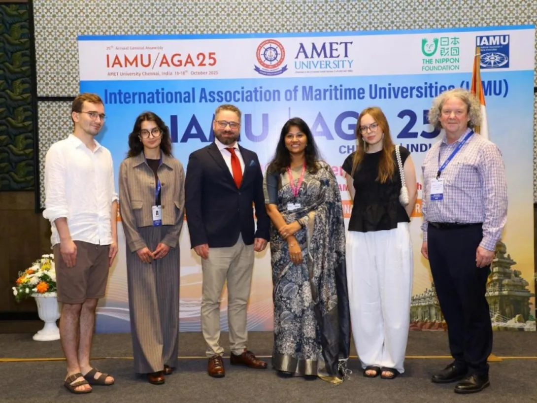 From 14 to 18 October 2025, the Rector of Gdynia Maritime University, Professor Adam Weintrit, together with six representatives of the University’s staff, doctoral candidates, and students, took part in the 25th Annual General Assembly of the International Association of Maritime Universities (IAMU AGA 2025). The event was organised by the Academy of Maritime Education and Training (AMET University) in Chennai, India.