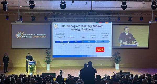 On 10 October 2025, individuals connected with the maritime sector in Poland and others gathered at the 24th Maritime Economic Forum. One of the major topics at this year’s event was the construction of a successor to the Dar Młodzieży. HM The Rector of GMU, Professor Adam Weintrit, gave a presentation on the project for the new training ship.