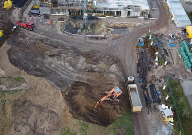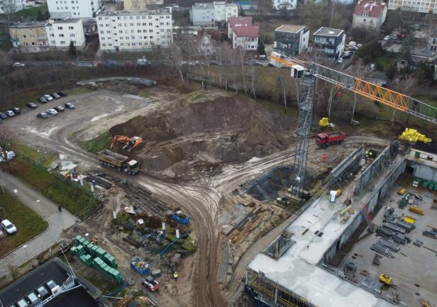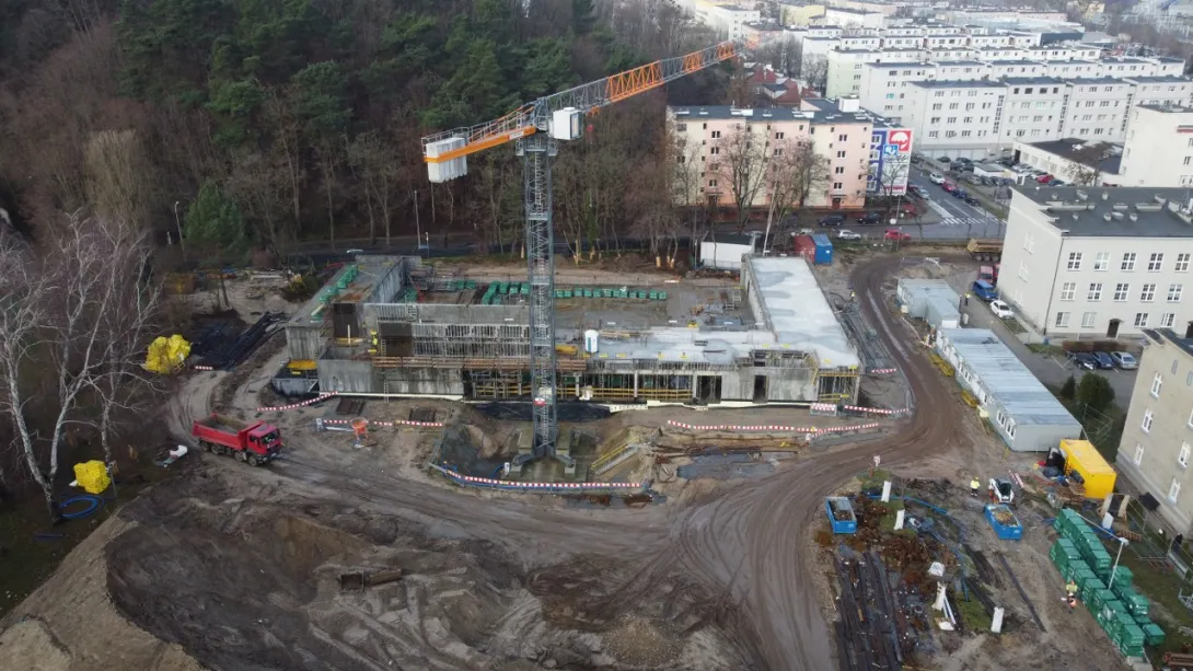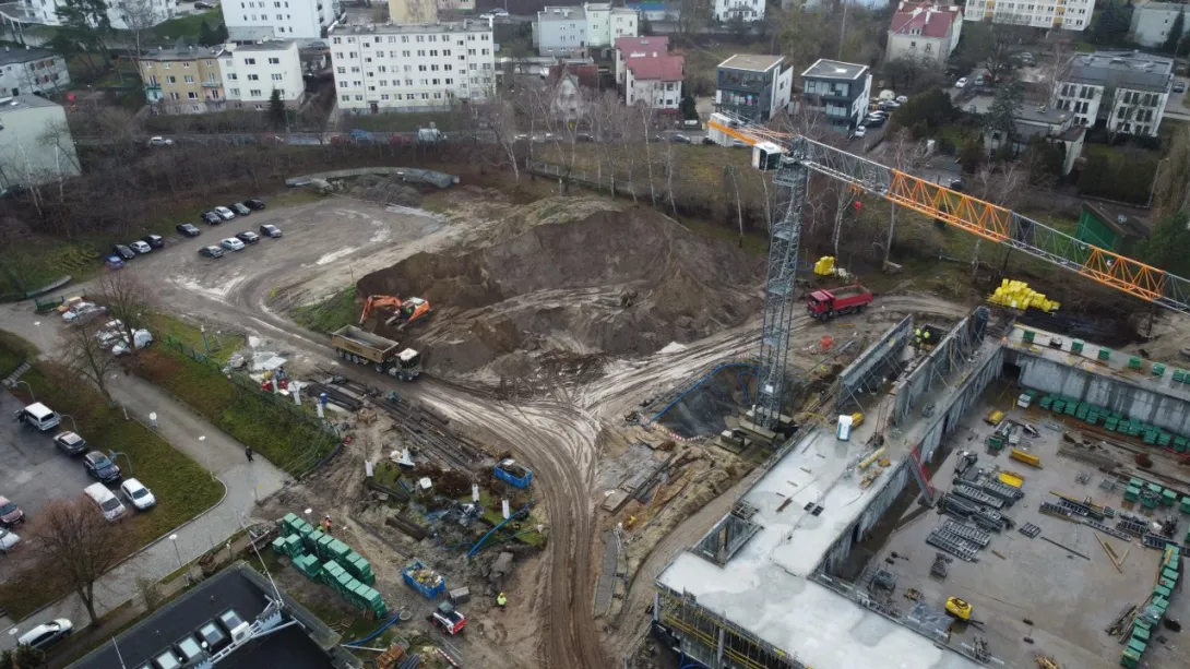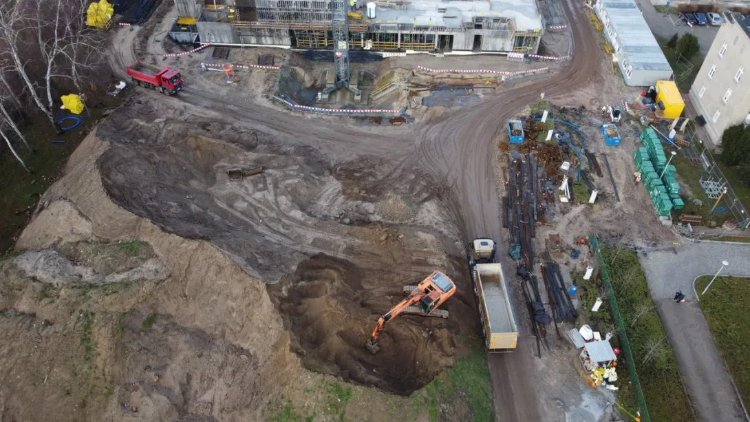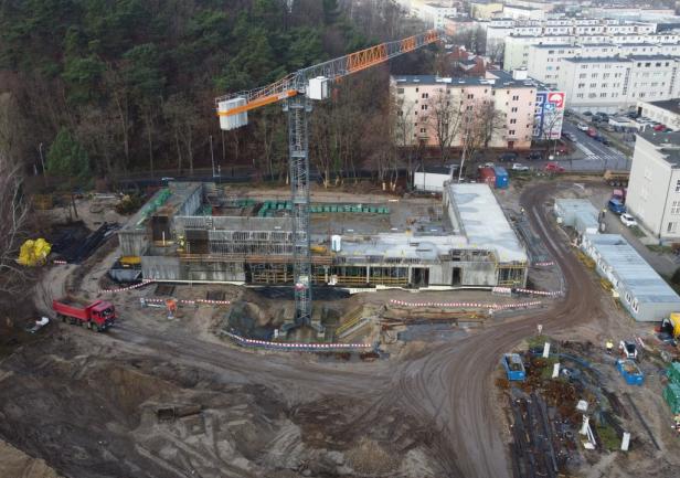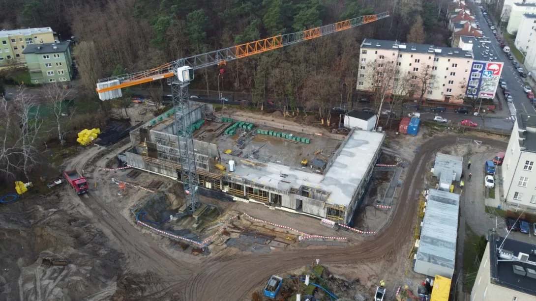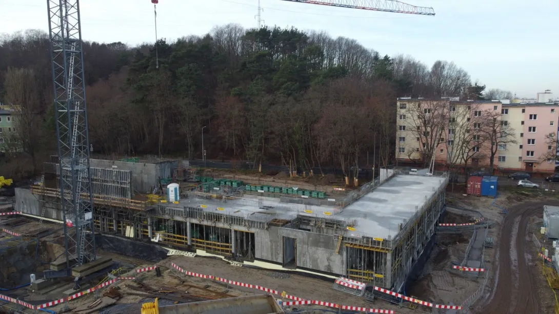 - the walls of the 1st floor, the staircase, and the elevator shafts up to the 1st floor. Work is currently ongoing on reinforcement and formwork on the first floor.