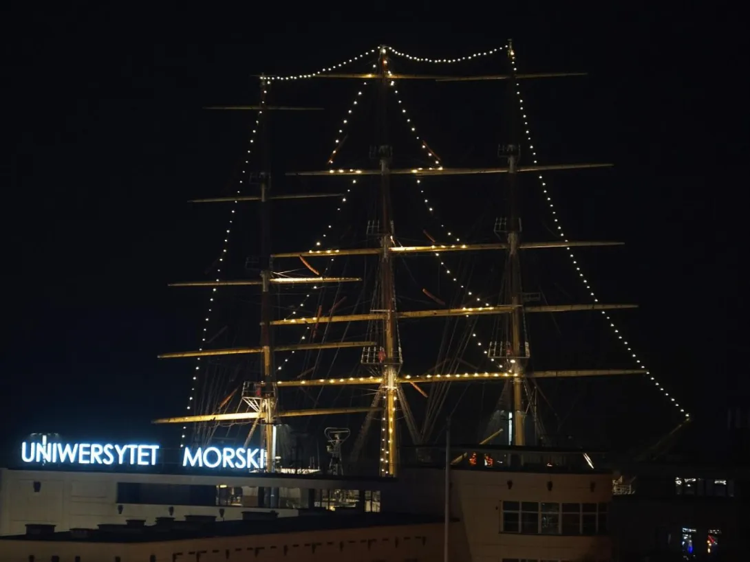 At 17:00, Rector Professor Adam Weintrit; the Mayor of Gdynia, Dr Wojciech Szczurek; and Rafał Szymański, Captain of the Dar Młodzieży, turned on the lights on the tallest Christmas tree in the Tricity.