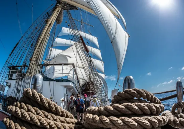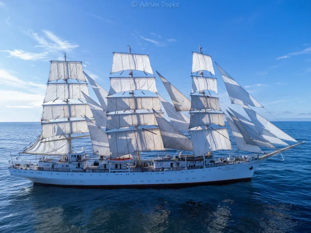 The history of Dar Młodzieży’s service on behalf of the maritime education of Polish youth touches all seas and oceans, and continents of the world. It includes participation in the world’s most prestigious regattas and rallies, sailing the world’s most challenging waters, and writing the monumental history of the Polish flag. Royalty, heads of state, many of sailing’s greats, and thousands of admirers of the white tall ship have graced Dar’s decks.