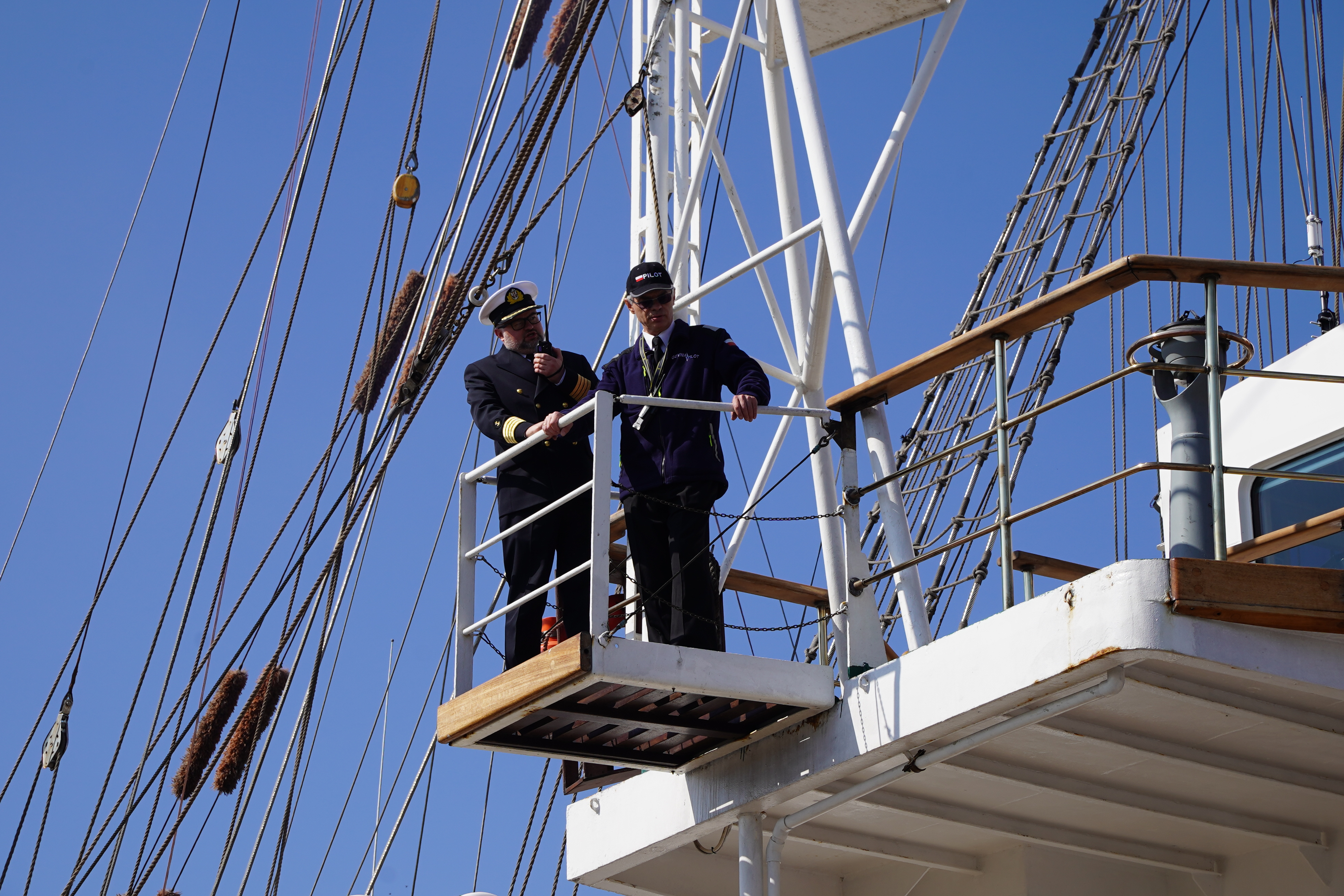 The departure of the Dar Młodzieży was preceded by a press conference held on board with the participation of Gdynia Maritime University leaders and representatives of the Ministry of Infrastructure. The University was represented by HM The Rector, Professor Adam Weintrit, and the Director of the Maritime Operations Department, Captain Dariusz Jellonek. Giving a speech on behalf of the Ministry of Infrastructure was Minister Dariusz Klimczak. The City of Gdynia was represented by Mayor Aleksandra Kosiorek.