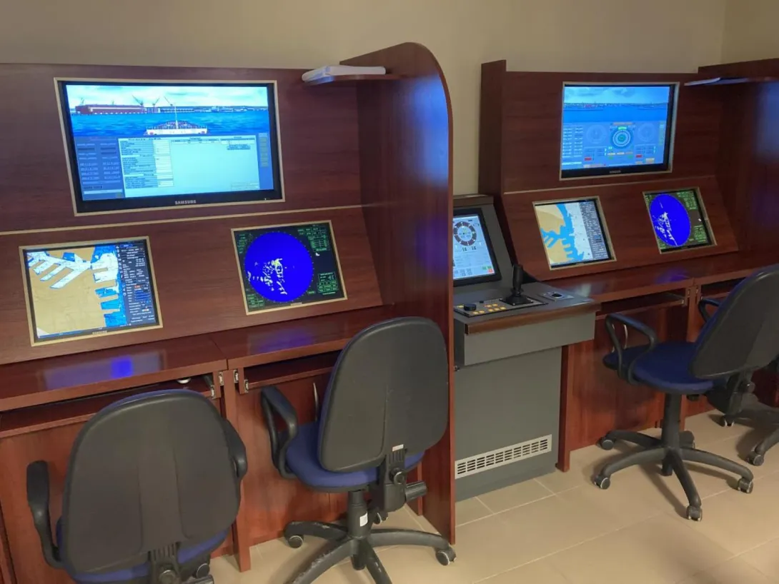 The laboratory features a NaviTrainer 5000 Professional simulator paired with the NaviSailor 4000 Electronic Chart Display and Information System (ECDIS). The simulator was developed by Transas, now part of the Wärtsilä Group.