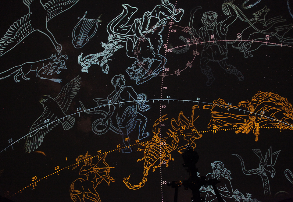 The planetarium's Skymaster ZKP 4 apparatus makes it possible to view 4,850 stars ranging from first to fifth magnitude, 38 constellation outlines, and the movement of satellites along any selected orbit. Students can explore a realistic image of the night sky from any point in the Northen Hemisphere, at any chosen time.