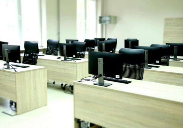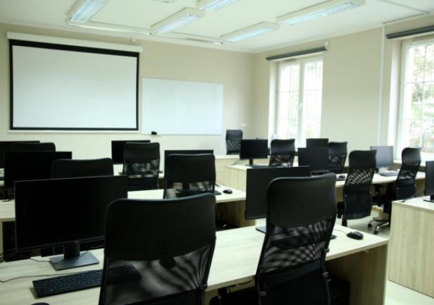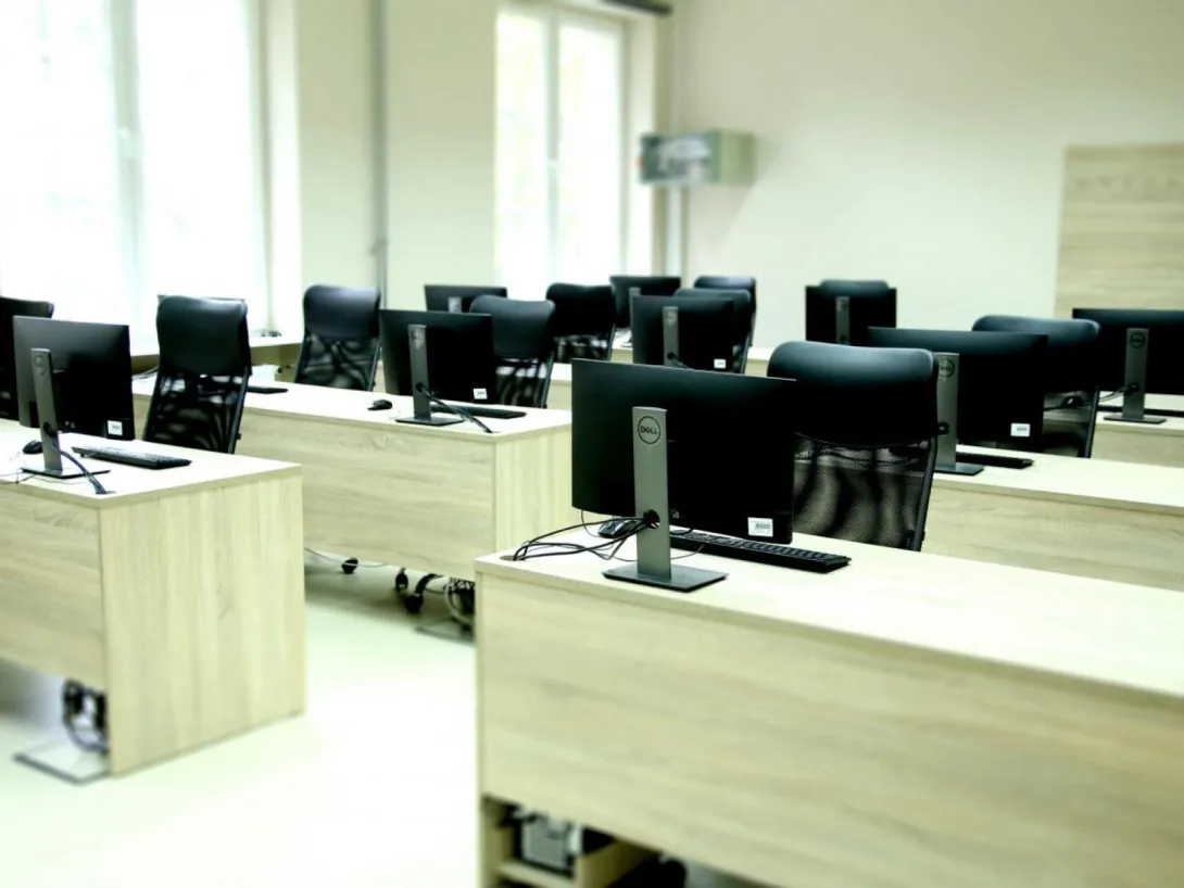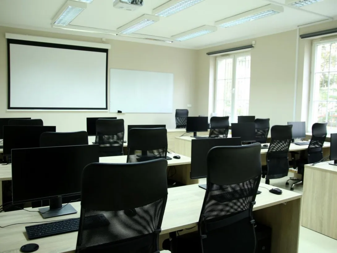 The laboratory provides a spacious, modern, and comfortable learning environment. It is equipped with acoustic panels for optimal sound quality, an audio-visual system with projector and screen, efficient ventilation and air conditioning, and adjustable lighting to ensure suitable conditions during extended simulator sessions.