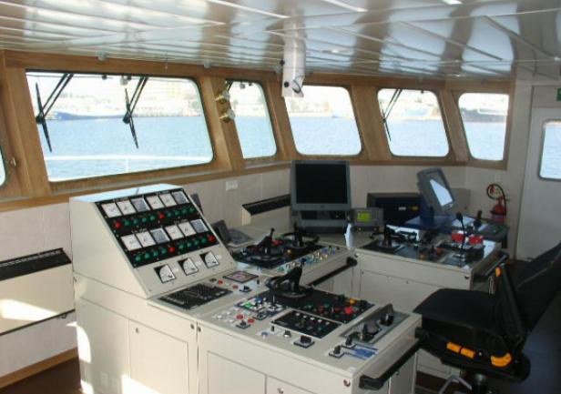 The operation of the ship is carried out by two five-man crews working in shifts. The crew includes the captain, watch officer, mechanical engineer officer, and two mariners.