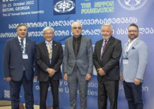 From left to right: Prof Jari Multisilta, Satakunta University of Applied Sciences; CADM Francis X McDonald, Massachusetts Maritime Academy; Prof Ana Peric Hadzic, University of Rijeka, Faculty of Maritime Studies; Prof Takeshi Nakazawa, IAMU Executive Director; Dr Yohei Sasakawa, Chairman of The Nippon Foundation, Prof Adam Weintrit, Gdynia Maritime University; Chair of IAMU, Prof Nafiz Arica, Piri Reis University; Dr Cleopatra Dounbia-Henry, President of the World Maritime University; Prof Yuqing Sun, Dalian Maritime University; Prof Michael van Balen, Australian Maritime College, University of Tasmania.