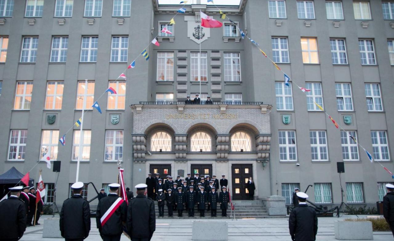 The University Senate, staff, students and alumni all gathered in the square in front of the main building. The Gdynia Maritime University banner was ceremonially introduced, accompanied by the GMU Guard of Honour and the Merchant Navy Orchestra. The raising of the flag took place to the sound of the National Anthem.