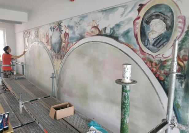 The unveiling of the mural was carried out by Rector Adam Weintrit, Faculty Dean Dr Tomasz Neumann, and the author of the work, Joanna Rogowska.