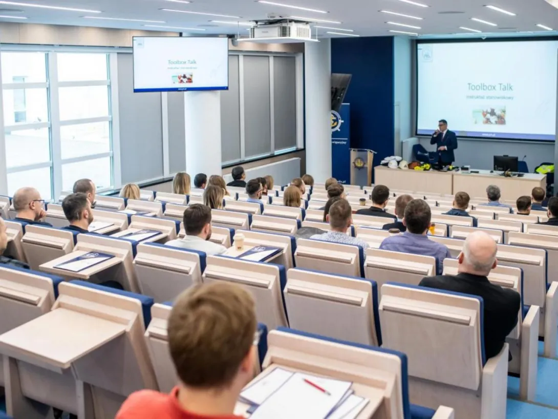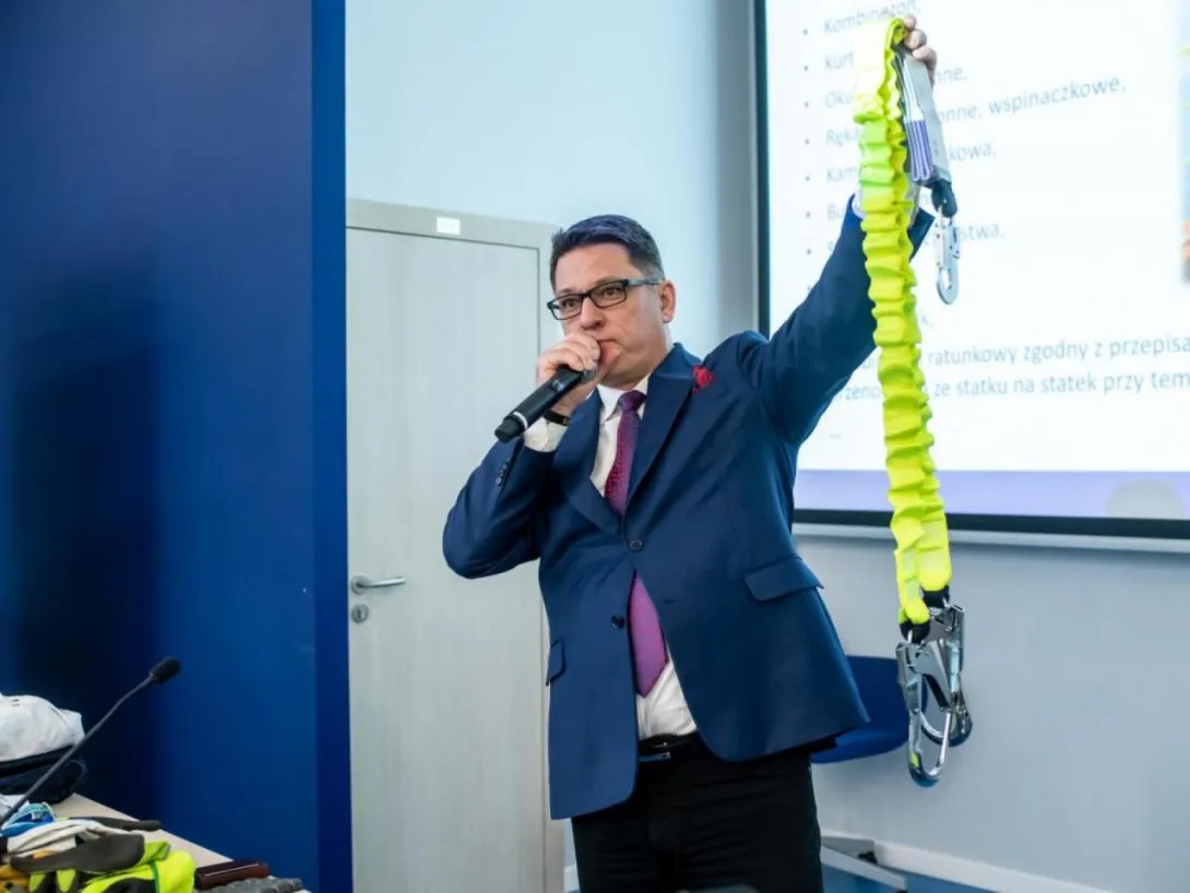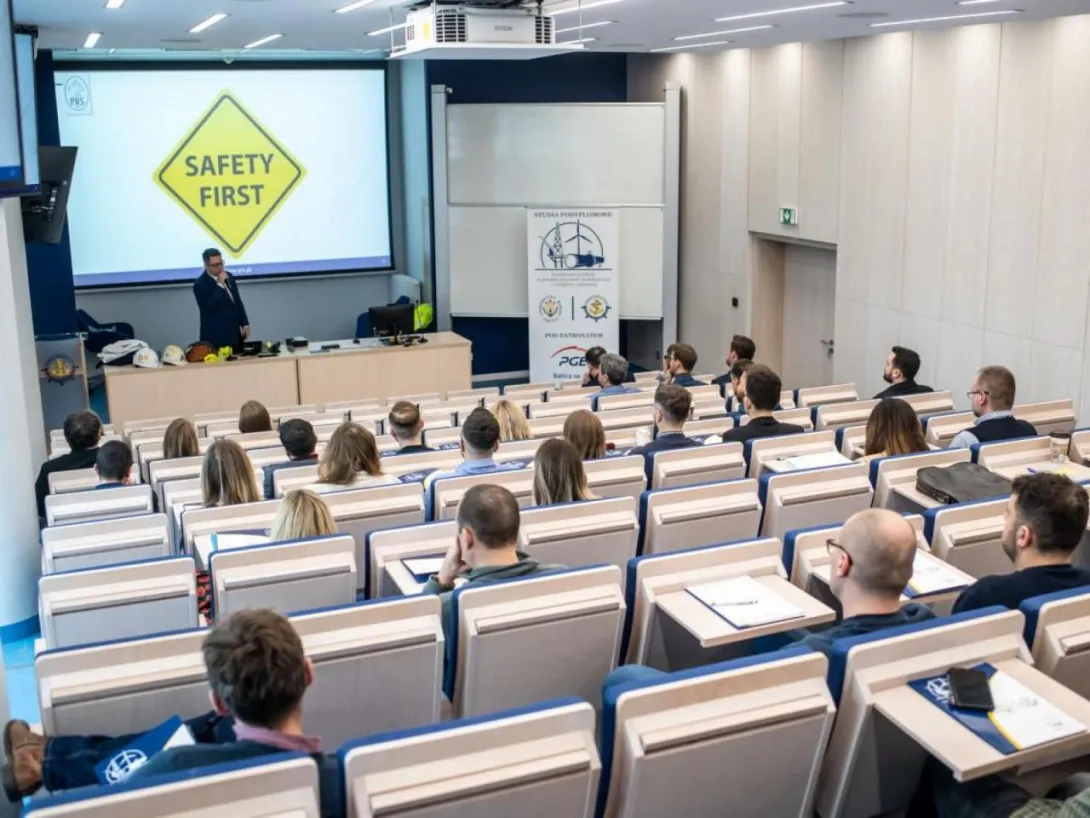 In his lecture, Sławomir Bałdyga, Director of the Industrial Supervision Department at the PRS, drew attention to the need to develop safety habits in our daily lives and to ensure the safety of ourselves and others, iterating the slogan "safety first." He stressed that in the offshore industry, the slogan "safety first" is of particular importance and pointed out how failure to comply with safety rules could have disastrous consequences. During the lecture, the Director of the Industrial Supervision Department presented the personal protective equipment necessary for work in the offshore sector. Sławomir Baldyga outlined the importance of choosing the right equipment, and how seemingly insignificant details and compliance with the principles of safe conduct can save lives. In the second part of the lecture, he raised issues concerning the risk management of a project, highlighting the importance of standards, regulations and training, especially in the offshore industry. Finally, he presented the mission of the classification societies, including the PRS, which he has been associated with since 2017, and whose aim is to help ensure the safety of people, vessels and land facilities, cargoes and the environment.